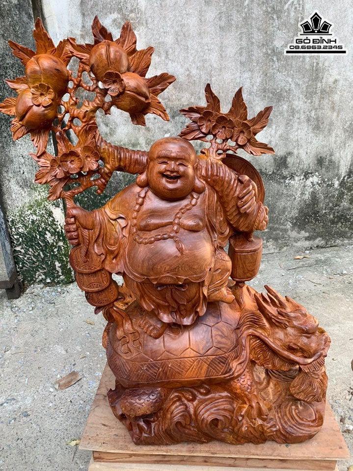 Tượng Phật Di Lặc Vác Cành Đào Gỗ Cẩm