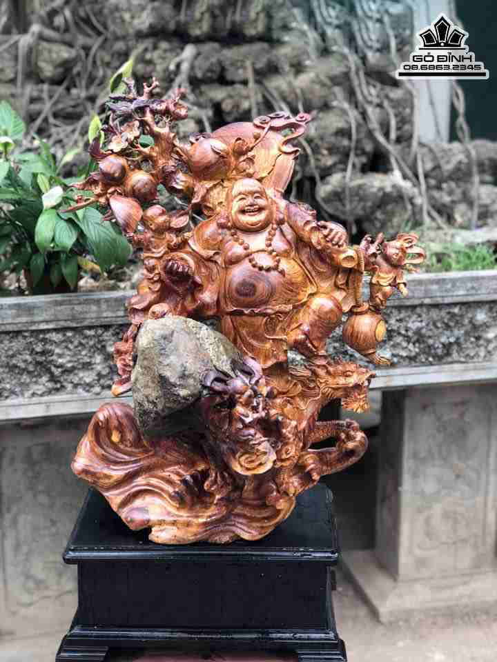 Tượng Phật Di Lặc Vác Cành Đào Gỗ Cẩm Cao 65 (Không Kỷ ) Rộng 50 Dày 45 (cm)