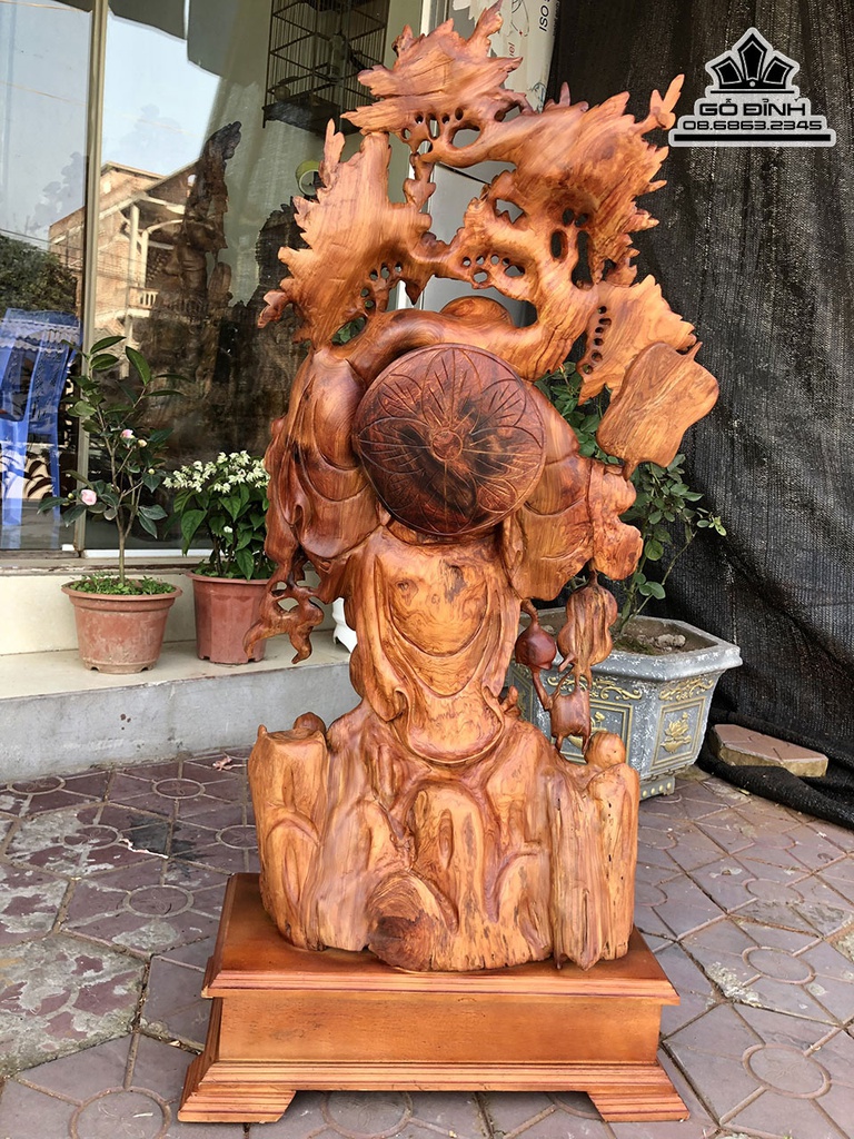 Tượng Phật Di Lặc Vác Cành Đào Gỗ Hương