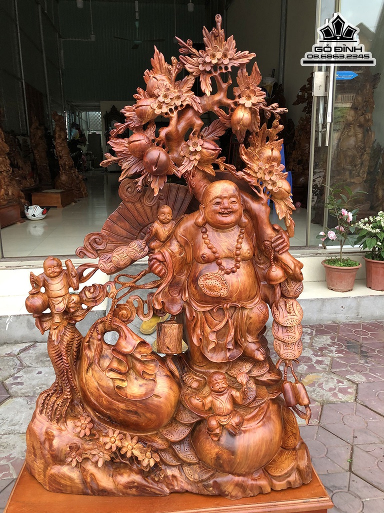 Tượng Phật Di Lặc Vác Cành Đào Gỗ Hương
