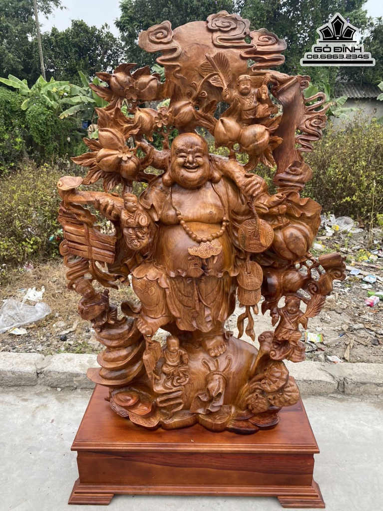 Tượng Phật Di lặc Vác Cành Đào Gỗ Hương Cao 116 Ngang 78 Sâu 26 Cả Kỷ 126 (cm)