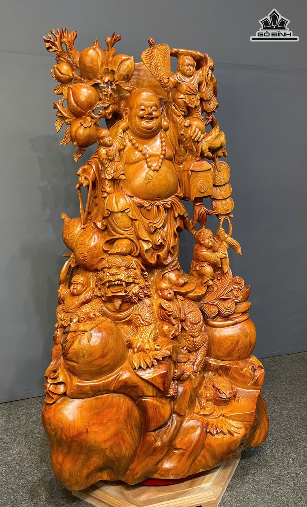 Tượng Phật Di Lặc Vác Cành Đào Gỗ Hương Cao 126 Ngang 72 Sâu 55 (cm)