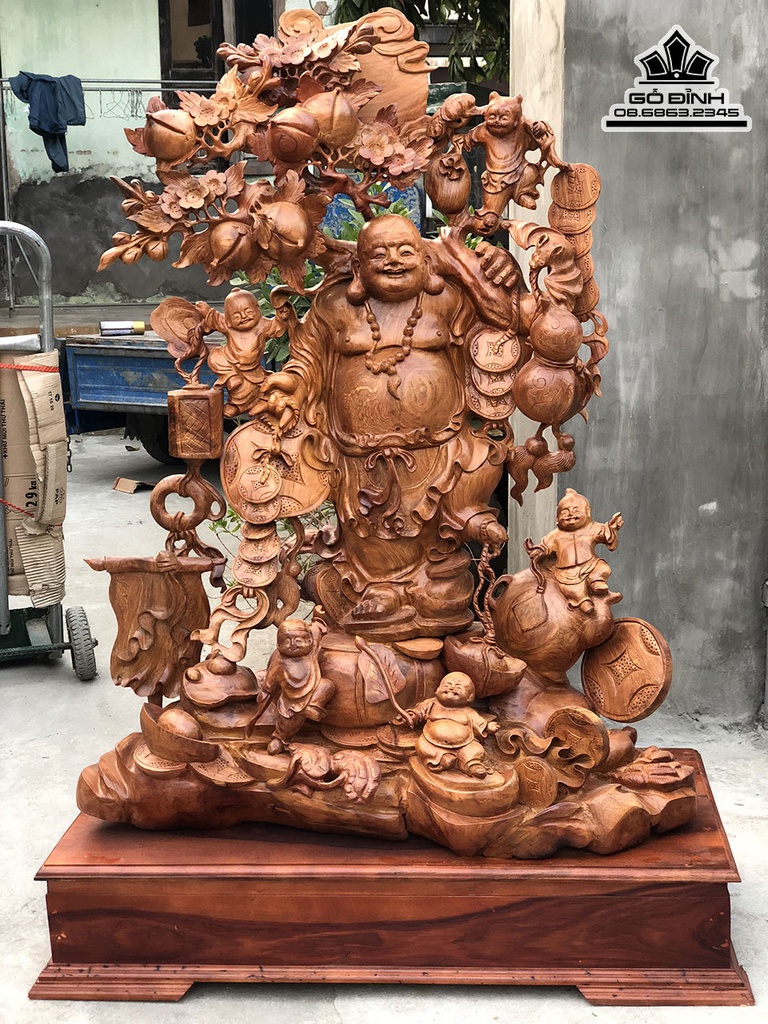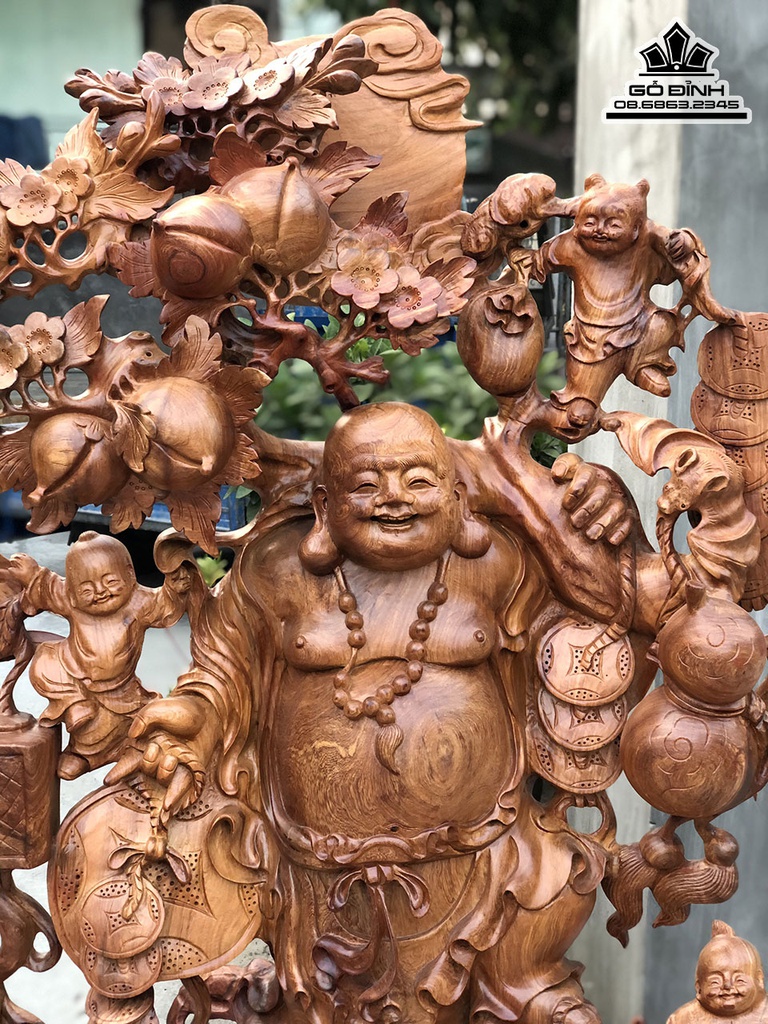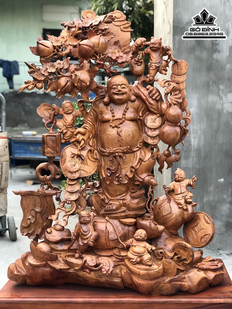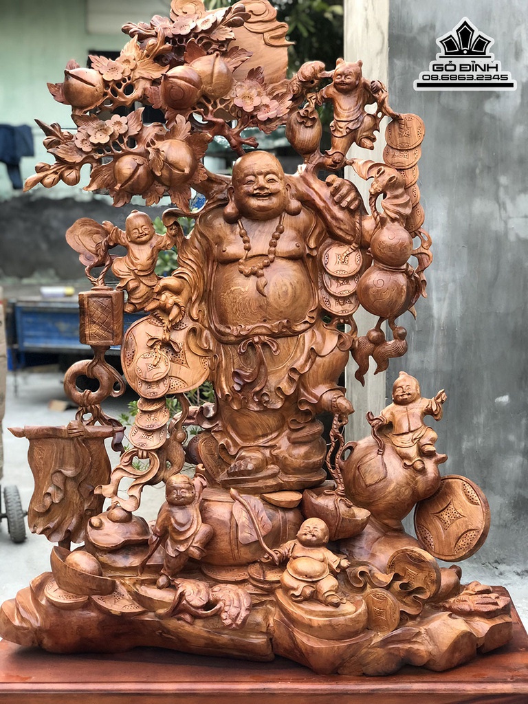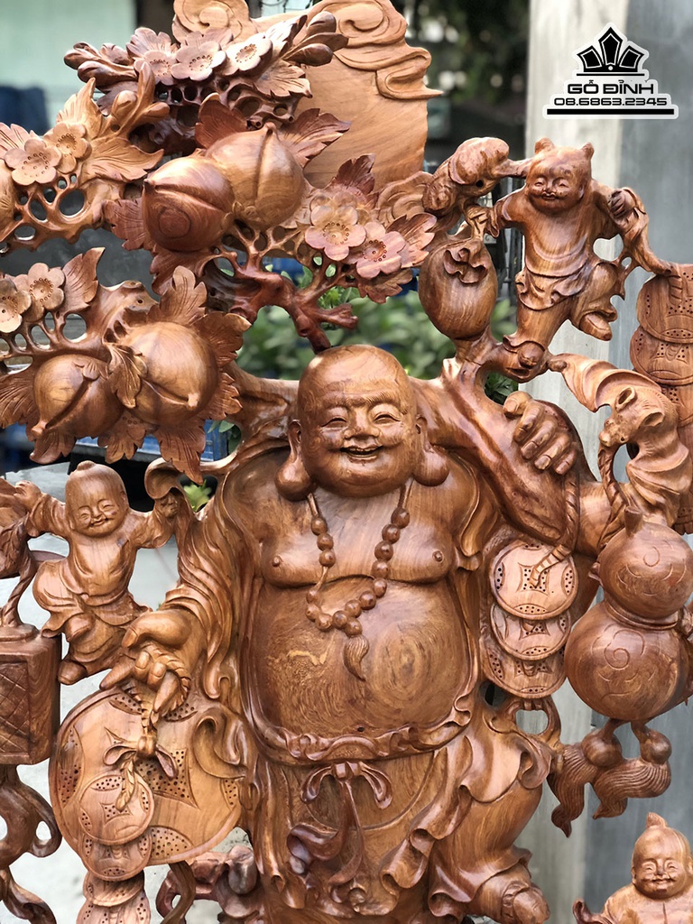 Tượng Phật Di Lặc Vác Cành Đào Gỗ Hương