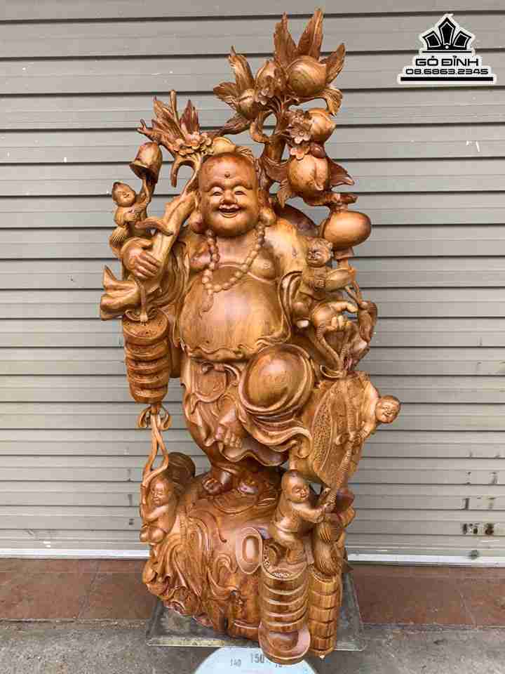 Tượng Phật Di Lặc Vác Cành Đào Gỗ Hương Cao 1m20 Rộng 60 Sâu 43 (cm)