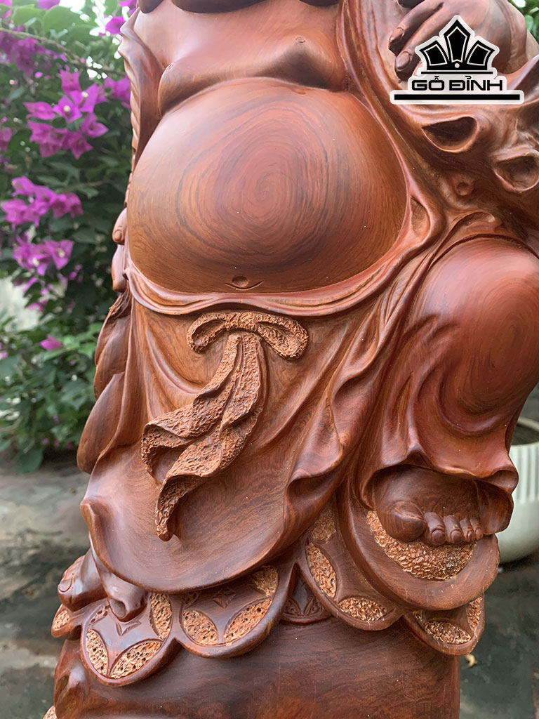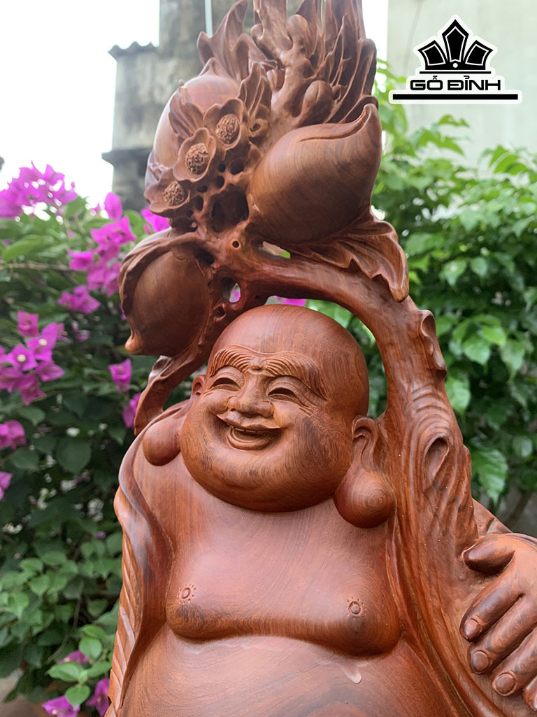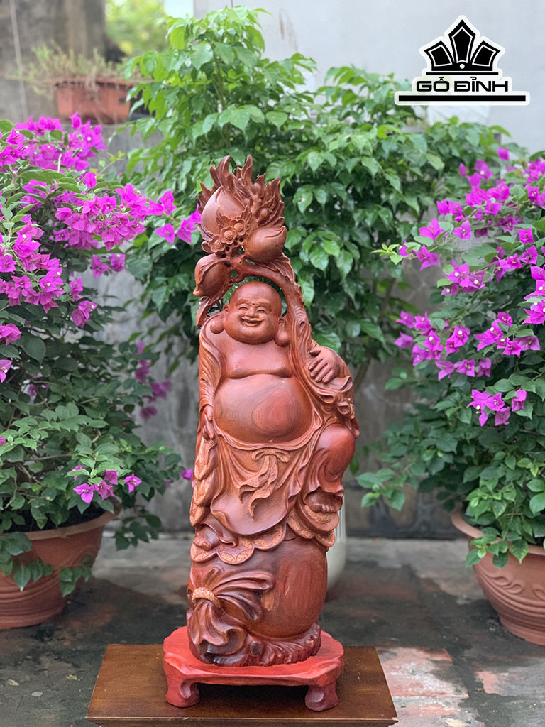 Tượng Phật Di Lặc Vác Cành Đào Gỗ Hương Cao 67 Ngang 25 Sâu 16 (cm)