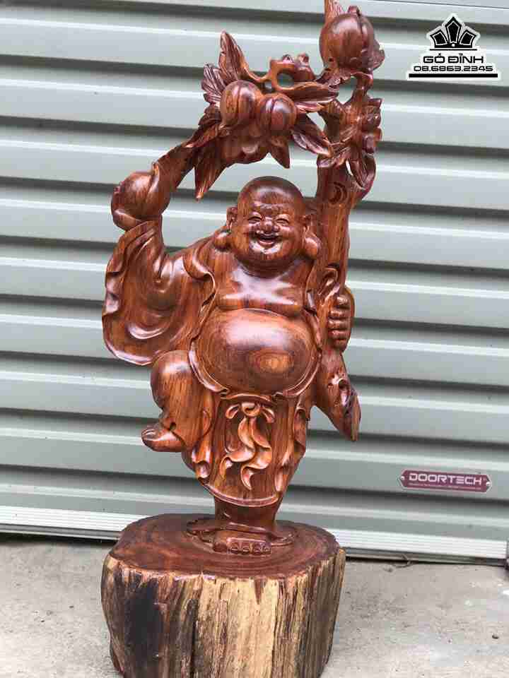 Tượng Phật Di Lặc Vác Cành Đào Gỗ Hương Cao 80 Ngang 30 Sâu 25 (cm)