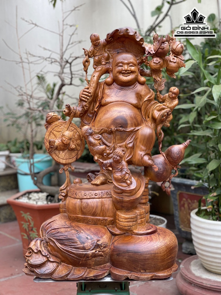 Tượng Phật Di Lặc Vác Cành Đào Gỗ Hương