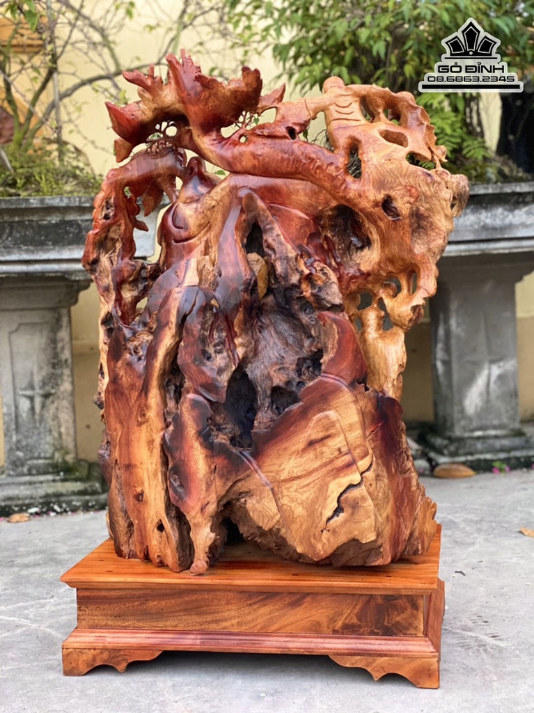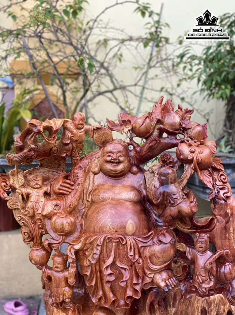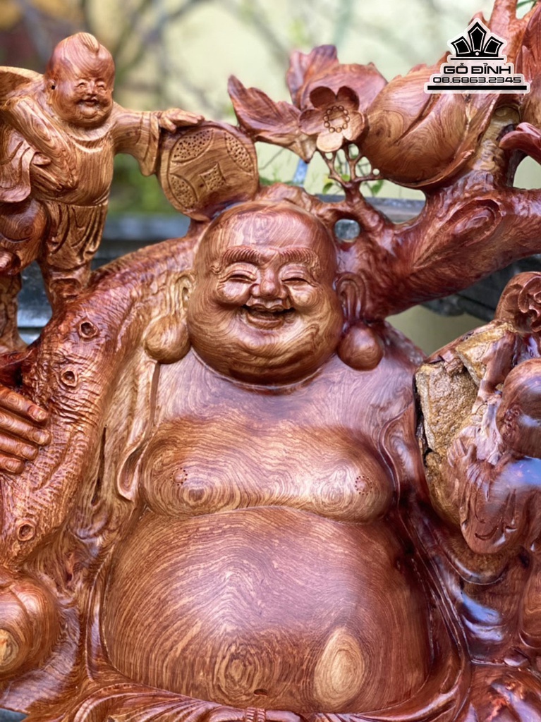 Tượng Phật Di Lặc Vác Cành Đào Gỗ Hương
