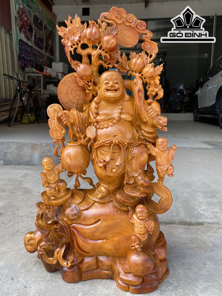 Tượng Phật Di Lặc Vác Cành Đào Gỗ Hương Cao 97 Ngang 55 Sâu 30 (cm)