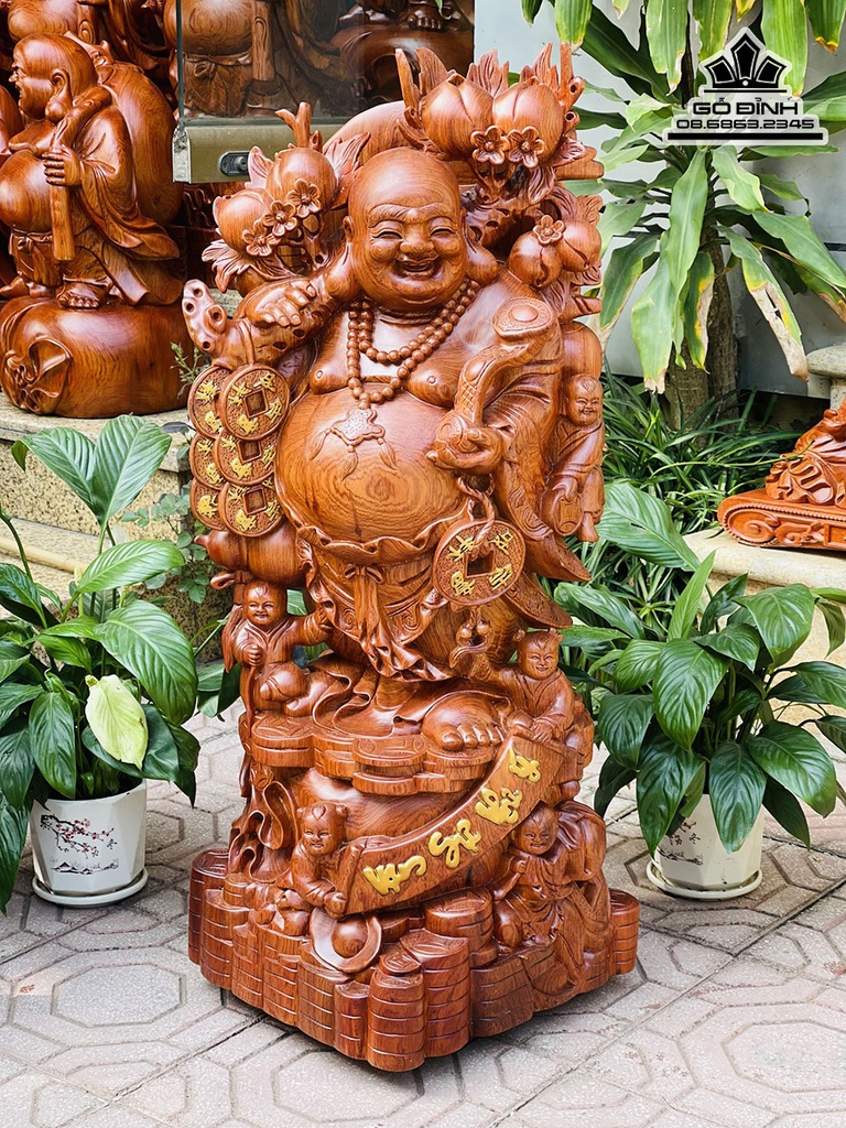 Tượng Phật Di Lặc Vác Cành Đào Gỗ Hương Đá Cao 90 Ngang 46 Sâu 44 (cm)
