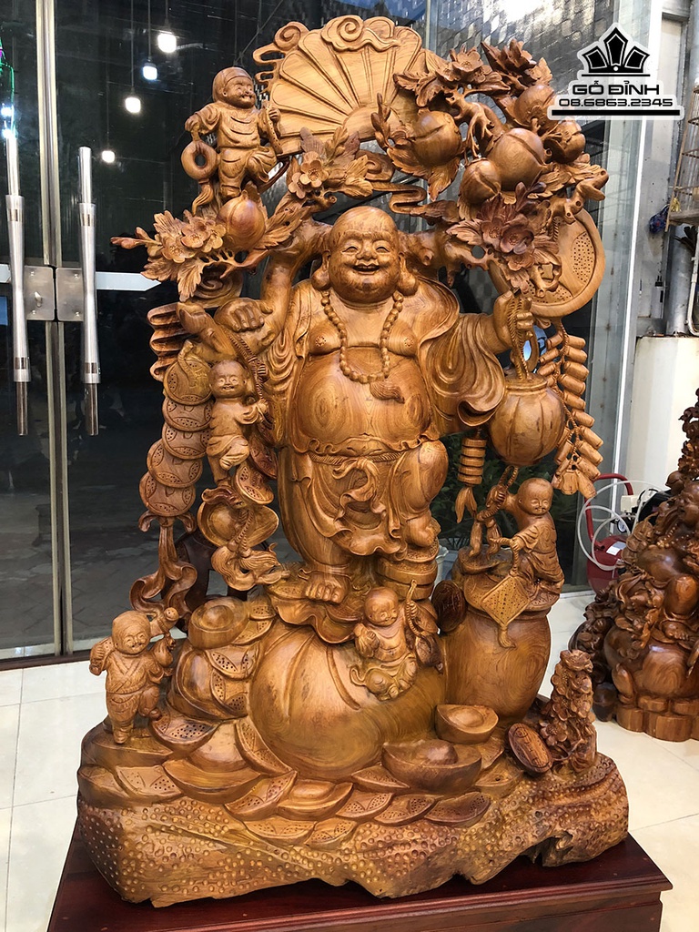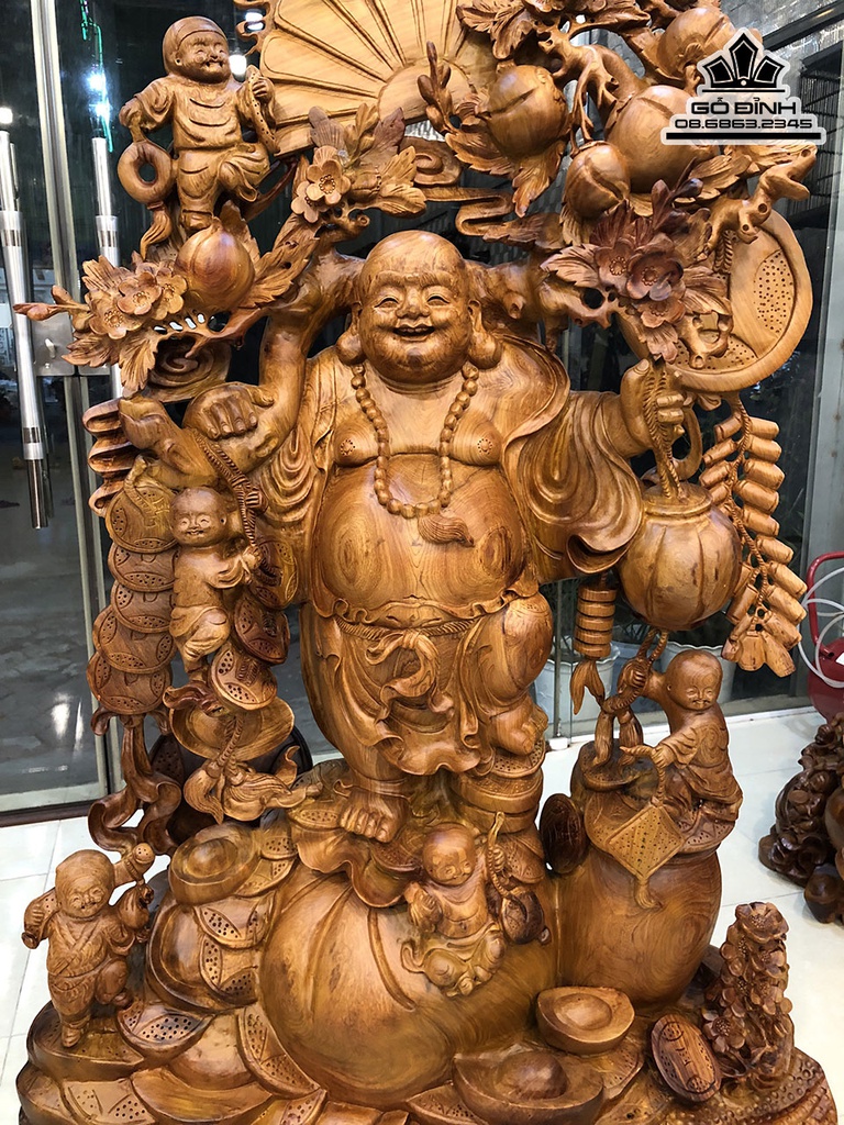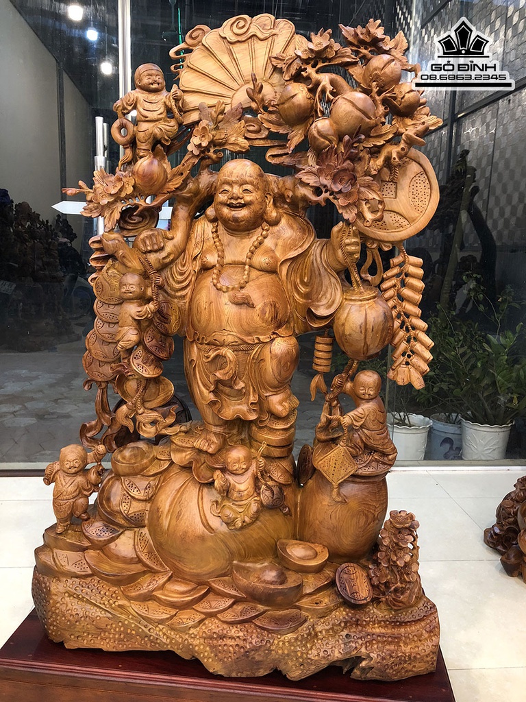 Tượng Phật Di Lặc Vác Cành Đào Gỗ Hương Việt