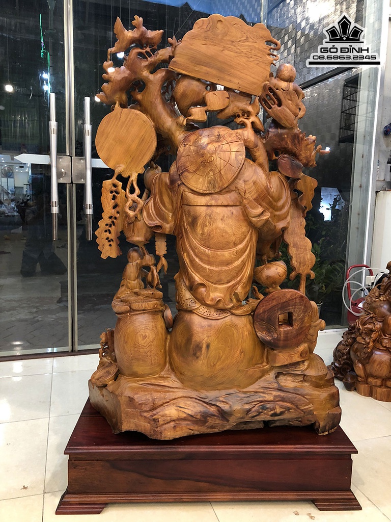Tượng Phật Di Lặc Vác Cành Đào Gỗ Hương Việt Cao 148 Ngang 85 Sâu 40 (cm)