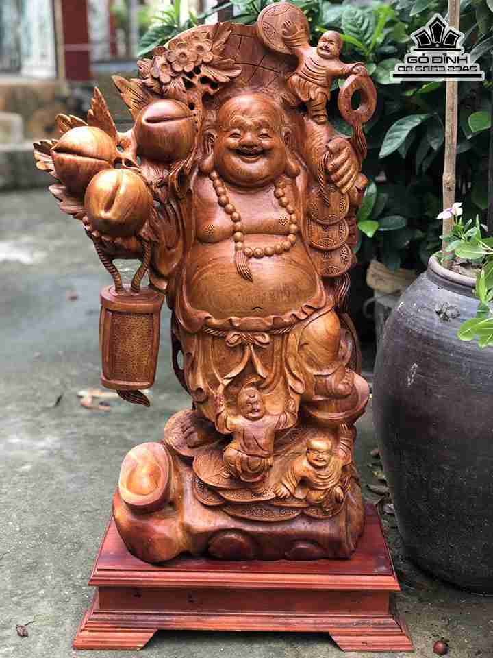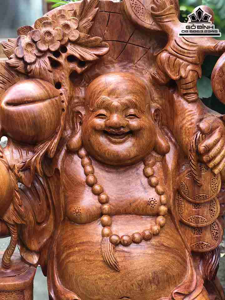 Tượng Phật Di Lặc Vác Cành Đào Gỗ Hương Việt Cao 72 Ngang 45 Sâu 22 Cả Kỷ 82 (cm)