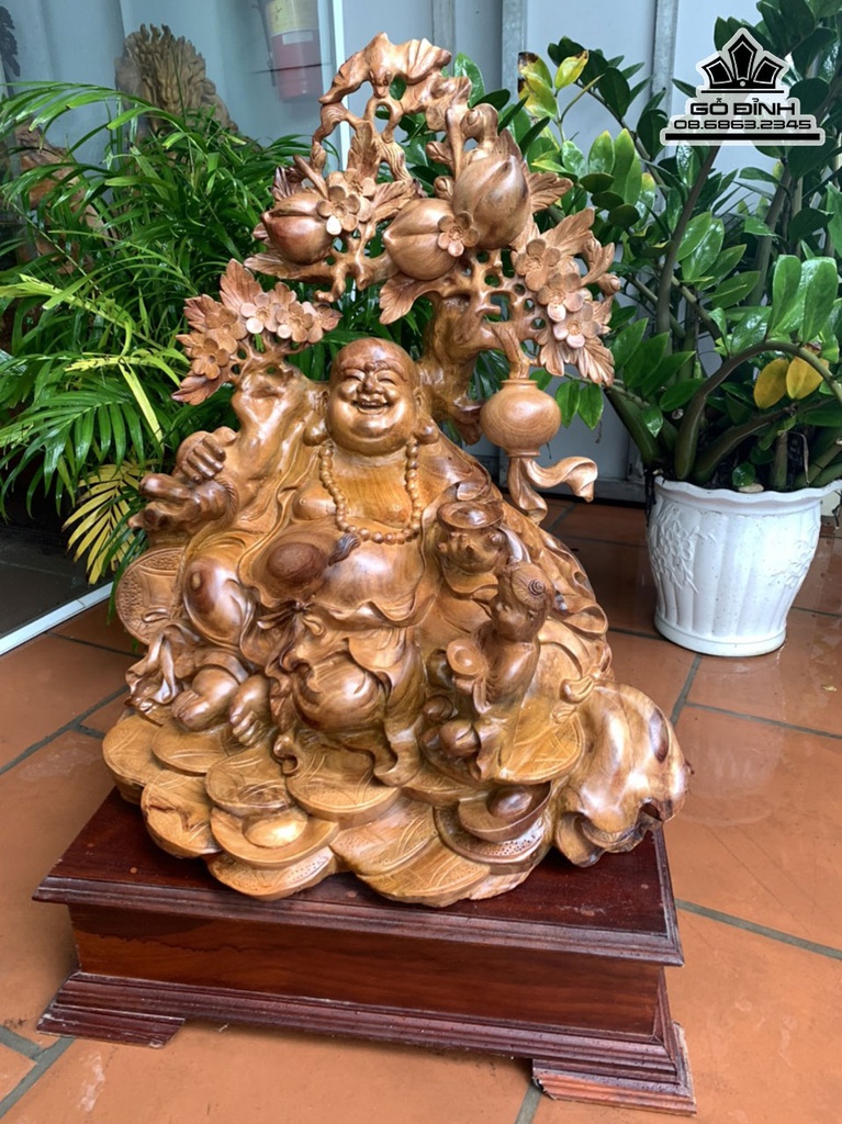 Tượng Phật Di Lặc Vác Cành Đào Gỗ Hương Việt