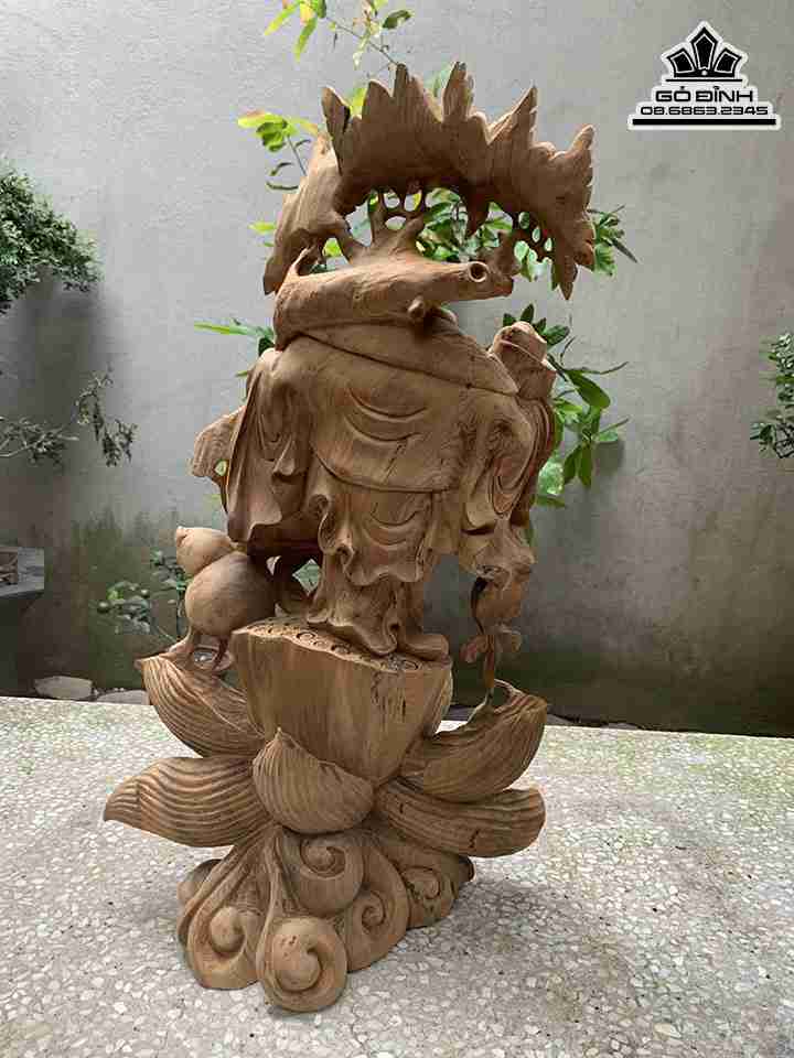 Tượng Phật Di Lặc Vác Cành Đào Gỗ Ngọc Am Cao 60 Ngang 35 Sâu 30 (cm)