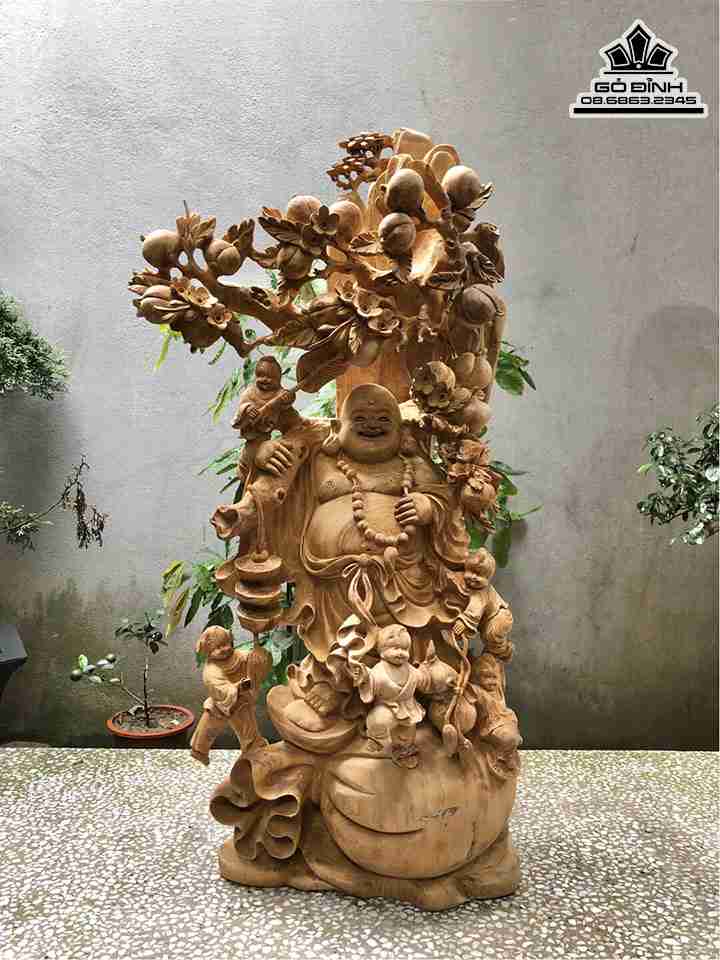Tượng Phật Di Lặc Vác Cành Đào Gỗ Ngọc Am Cao 78 Ngang 43 Sâu 30 (cm)