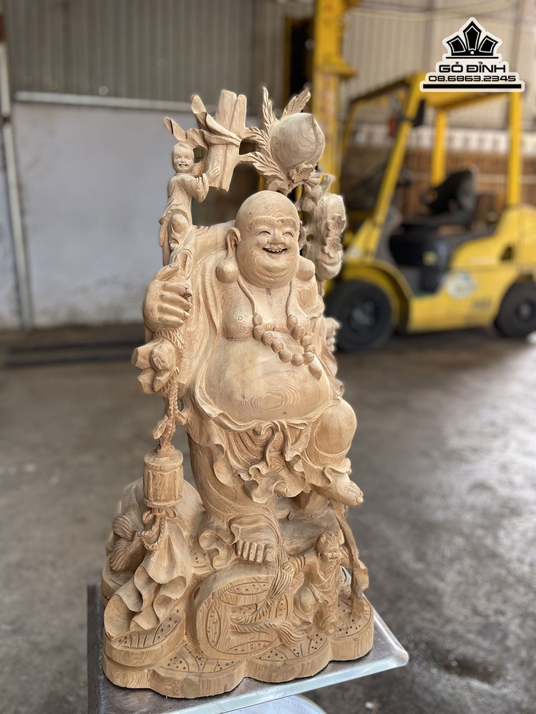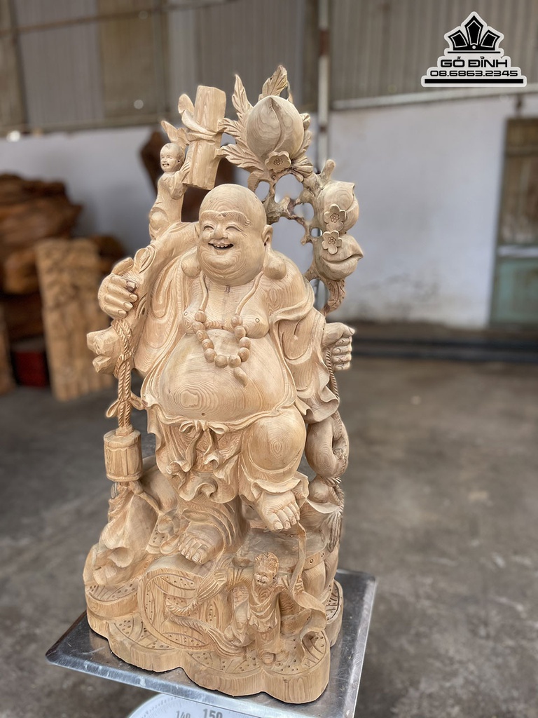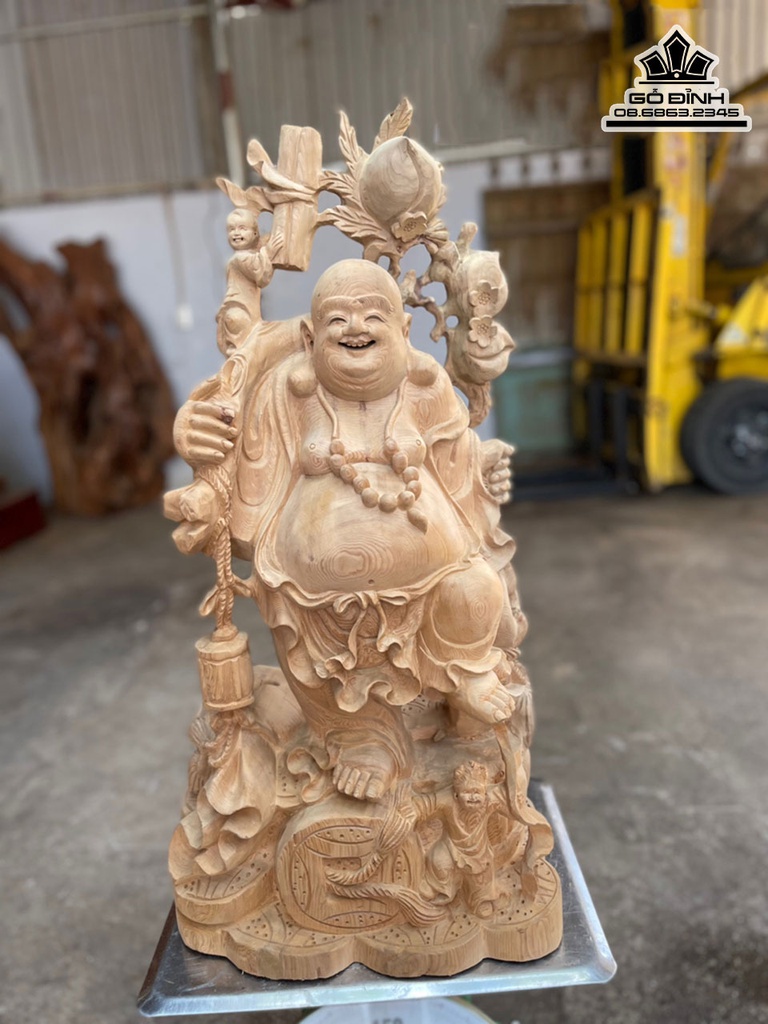 Tương Phật Di Lặc Vác Cành Đào Gỗ Ngọc Am