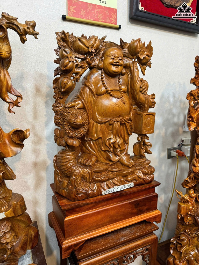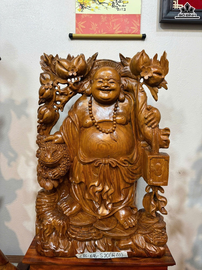 Tượng Phật Di Lặc Vác Cành Đào Gỗ Ngọc Am Cao 86 Ngang 46 Sâu 20 (cm)