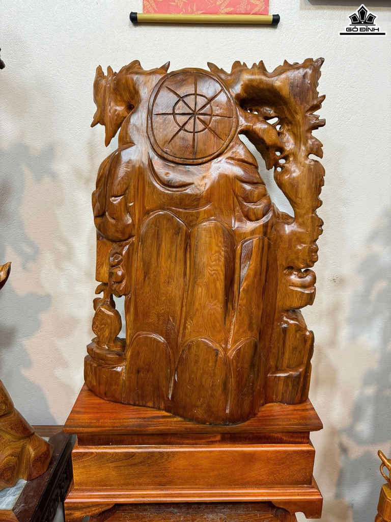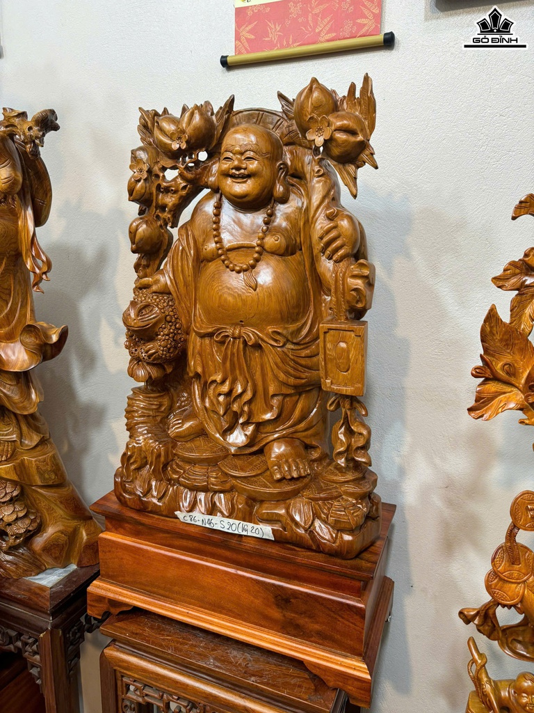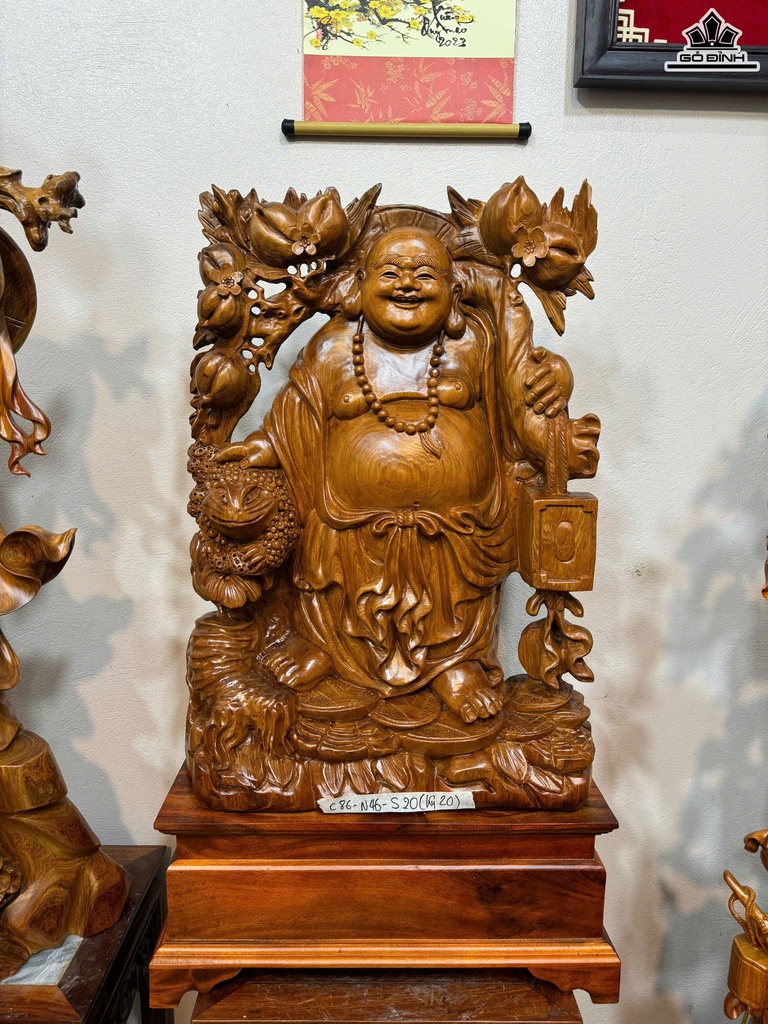 Tượng Phật Di Lặc Vác Cành Đào Gỗ Ngọc Am Cao 86 Ngang 46 Sâu 20 (cm)