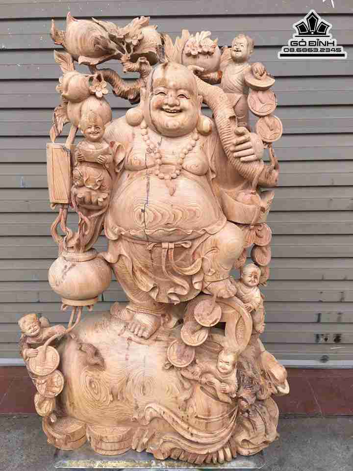 Tượng Phật Di Lặc Vác Cành Đào Gỗ Ngọc Am Cao 88 Rộng 60 Sâu 40 (cm)