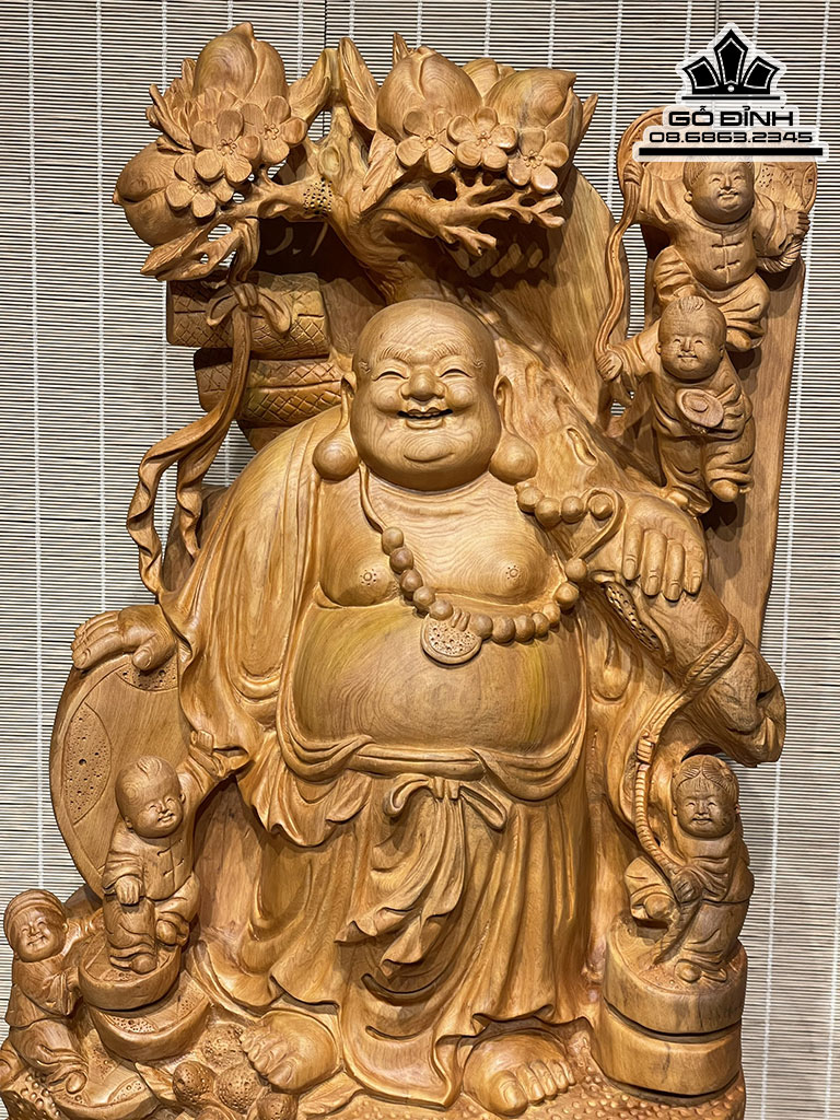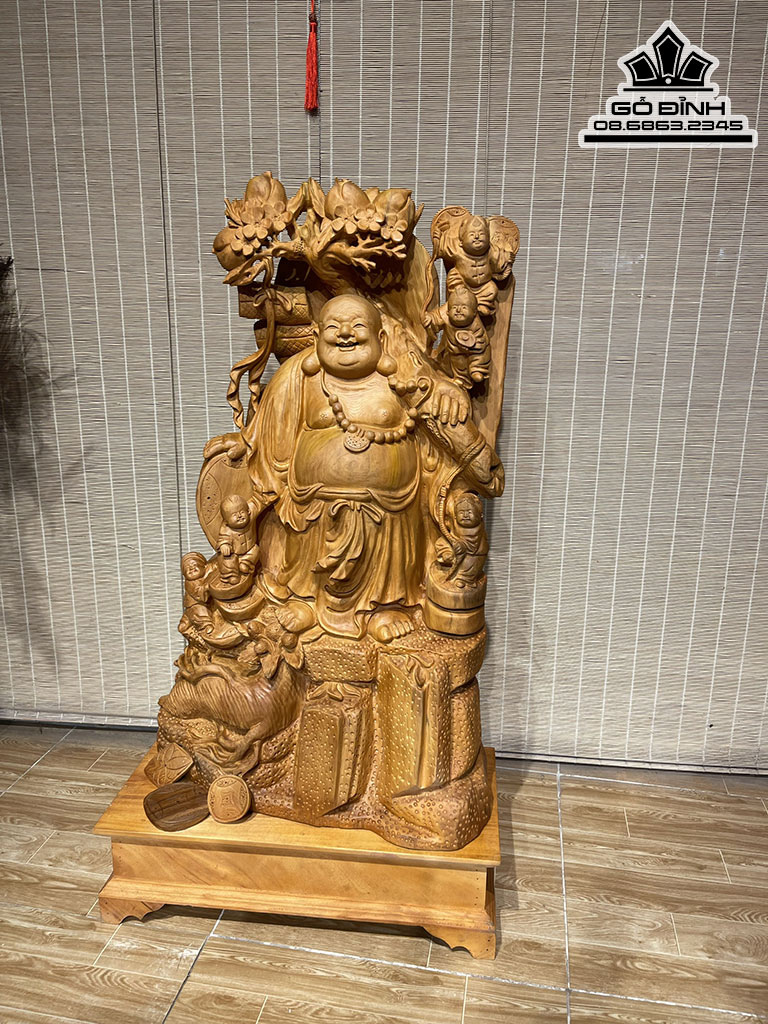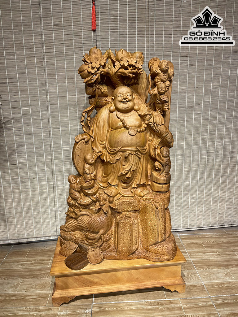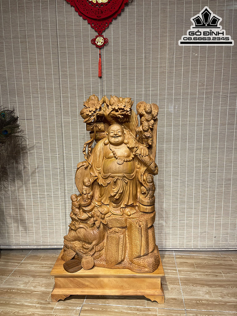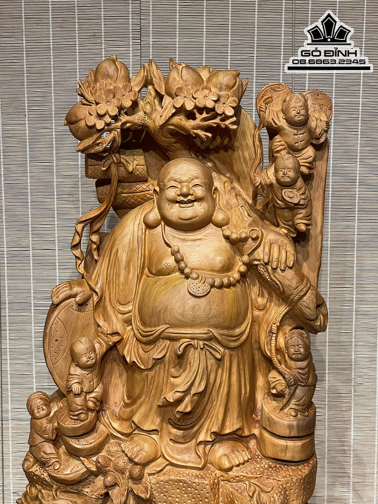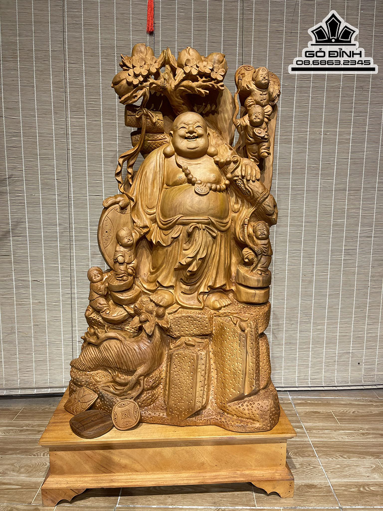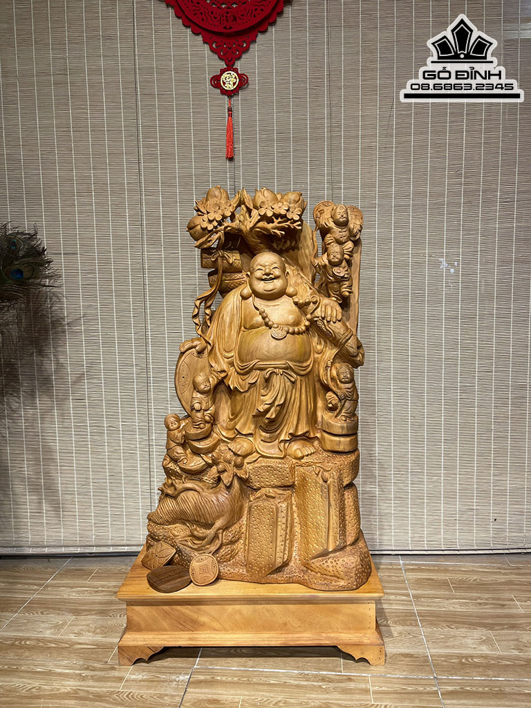 Tượng Phật Di Lặc Vác Cành Đào Gỗ Ngọc Am
