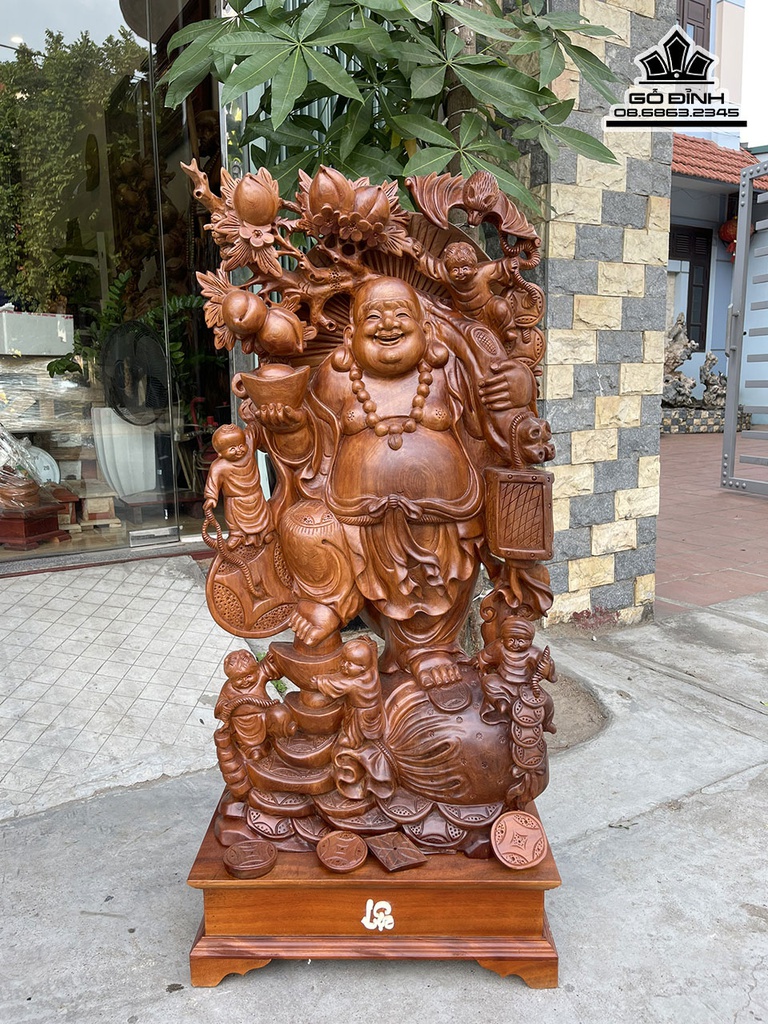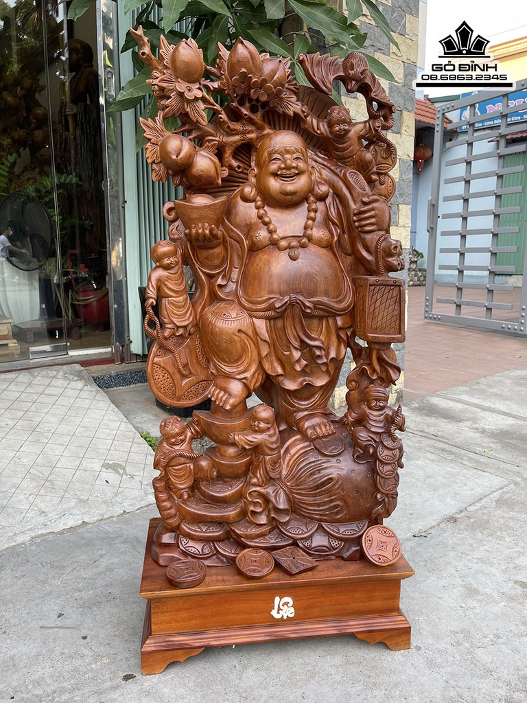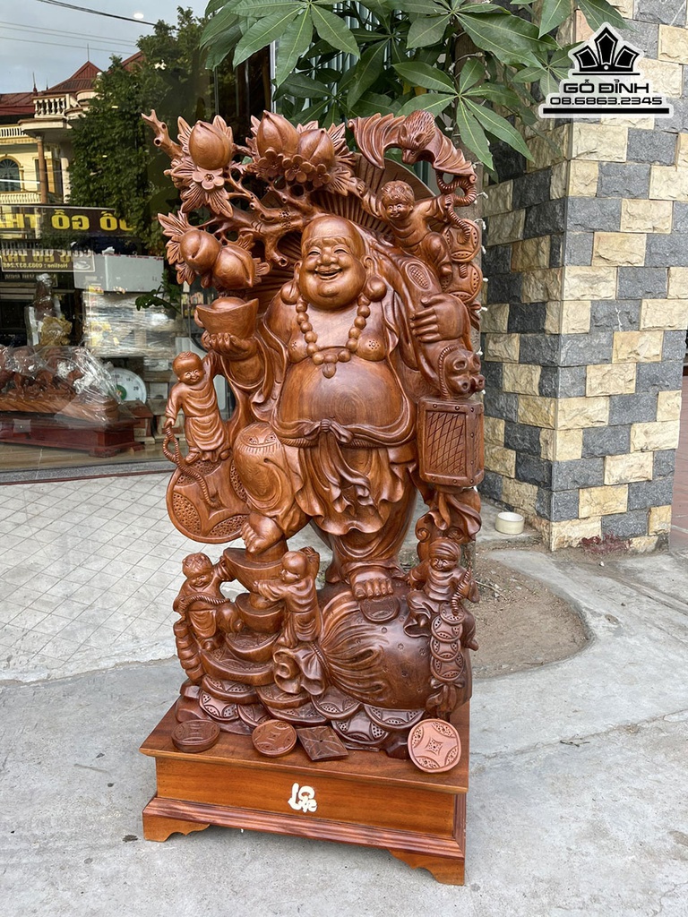 Tượng Phật Di Lặc Vác Cành Đào Gỗ Ngọc Am
