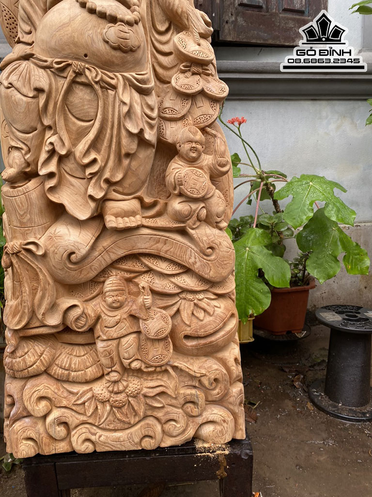 Tượng Phật Di Lặc Vác Cành Đào Gỗ Ngọc Am Lên Tuyết
