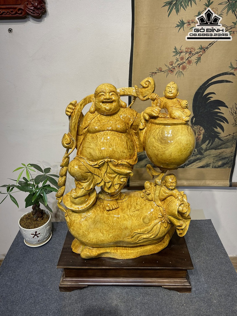 Tượng Phật Di Lặc Vác Cành Đào Gỗ Nu Kháo