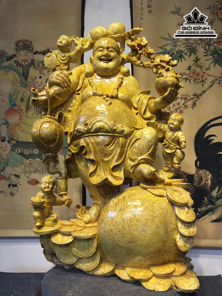Tượng Phật Di Lặc Vác Cành Đào Gỗ Nu Kháo