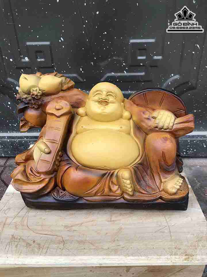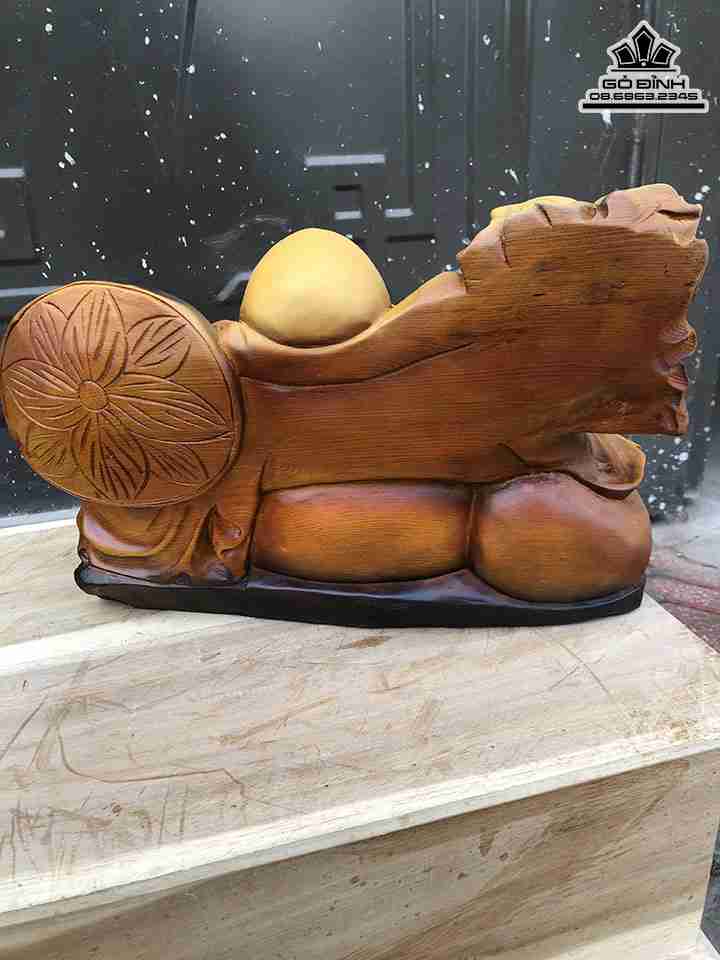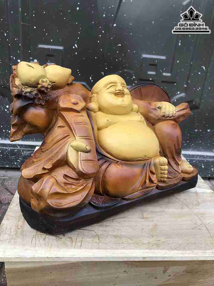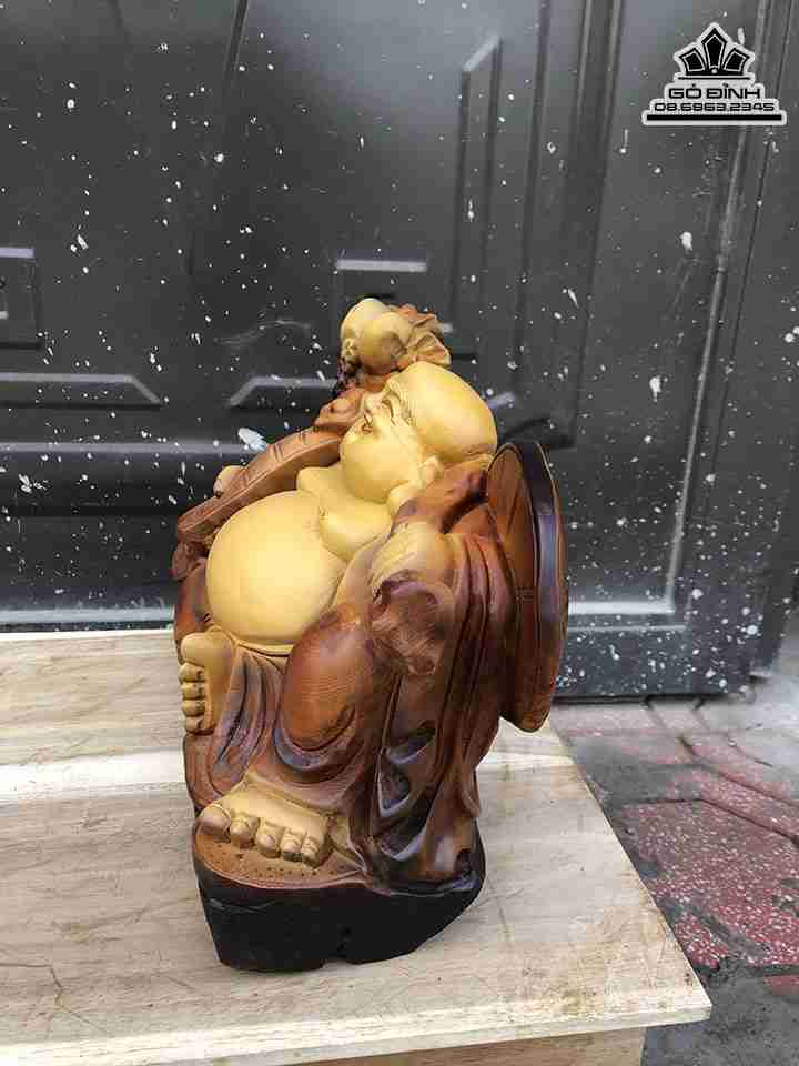 Tượng Phật Di Lắc Vác Cành Đào Gỗ Pơ Mu