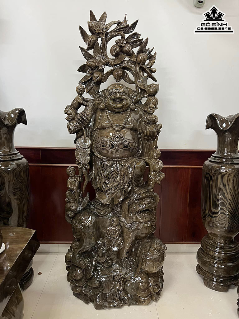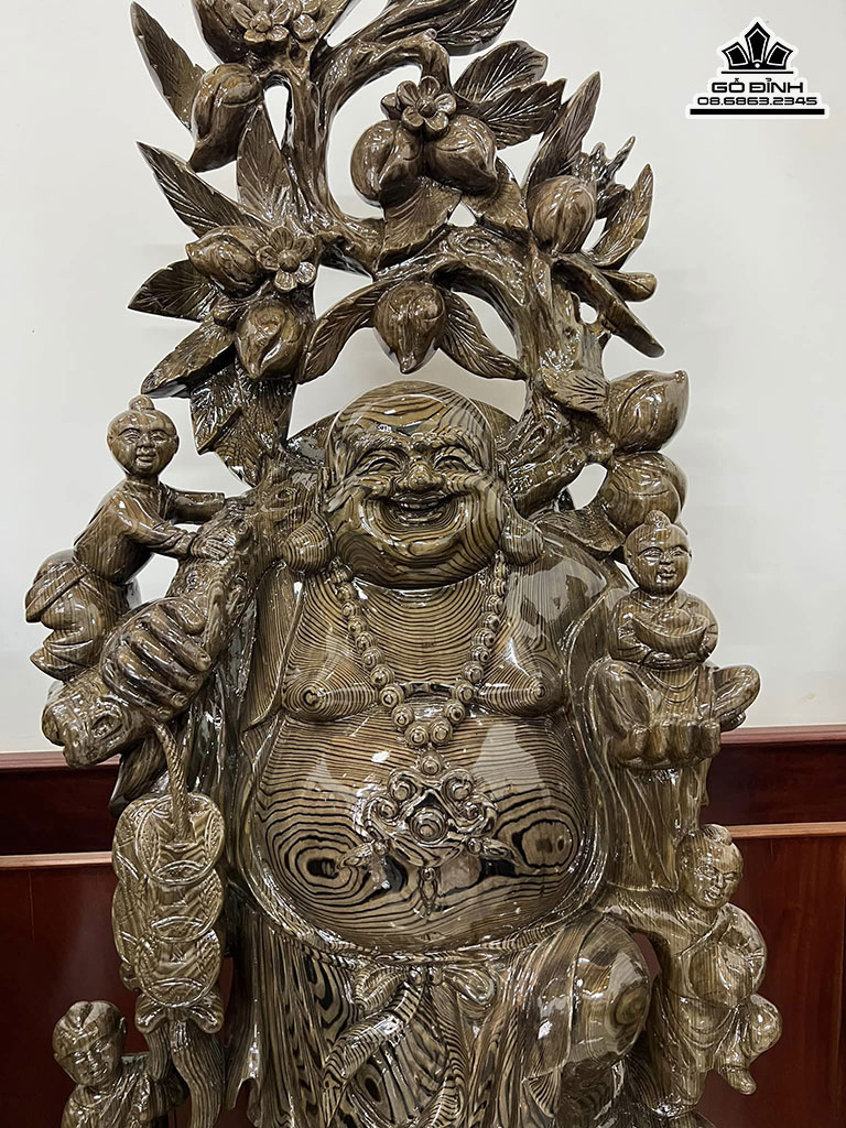 Tượng Phật Di Lặc Vác Cành Đào Gỗ Thủy Tùng