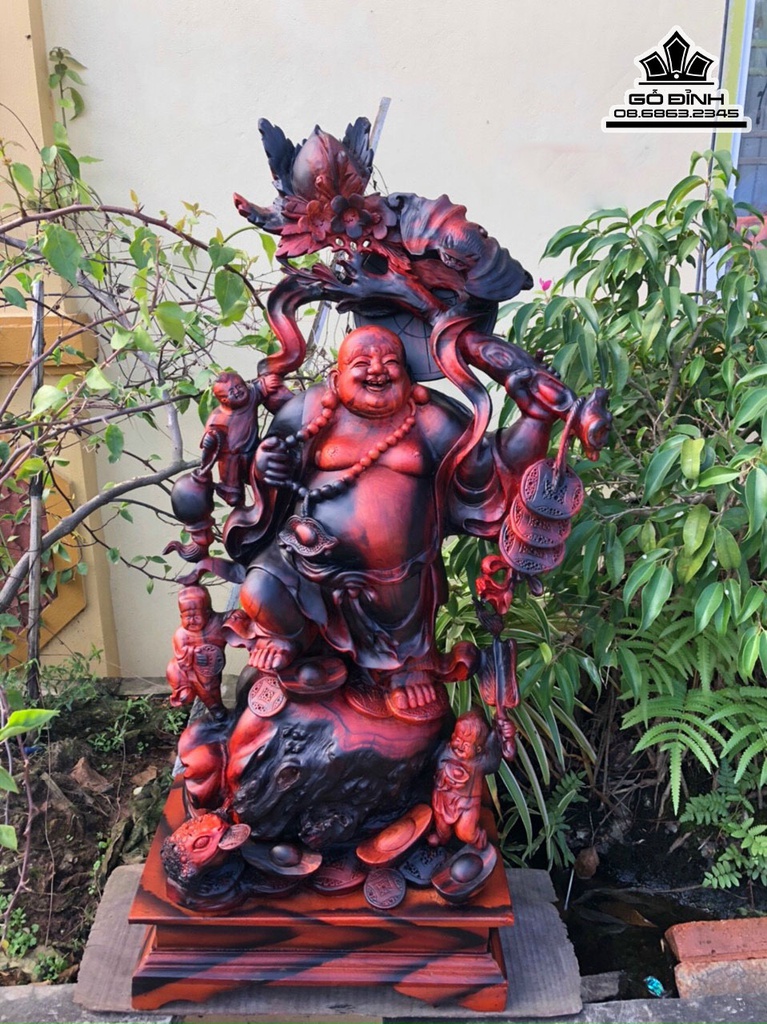 Tượng Phật Di Lặc Vác Cành Đào Gỗ Trắc
