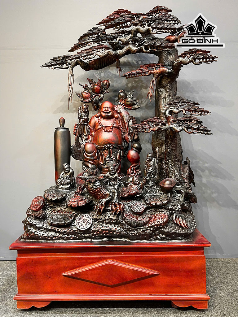 Tượng Phật Di Lặc Vác Cành Đào Gỗ Trắc Cao Cả Kỷ 154 - Kỷ Cao 31 Ngang 90 Sâu 45 (cm)