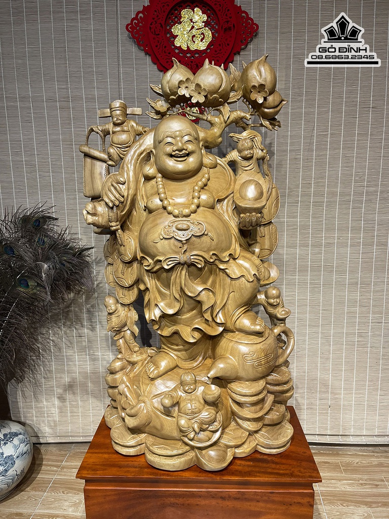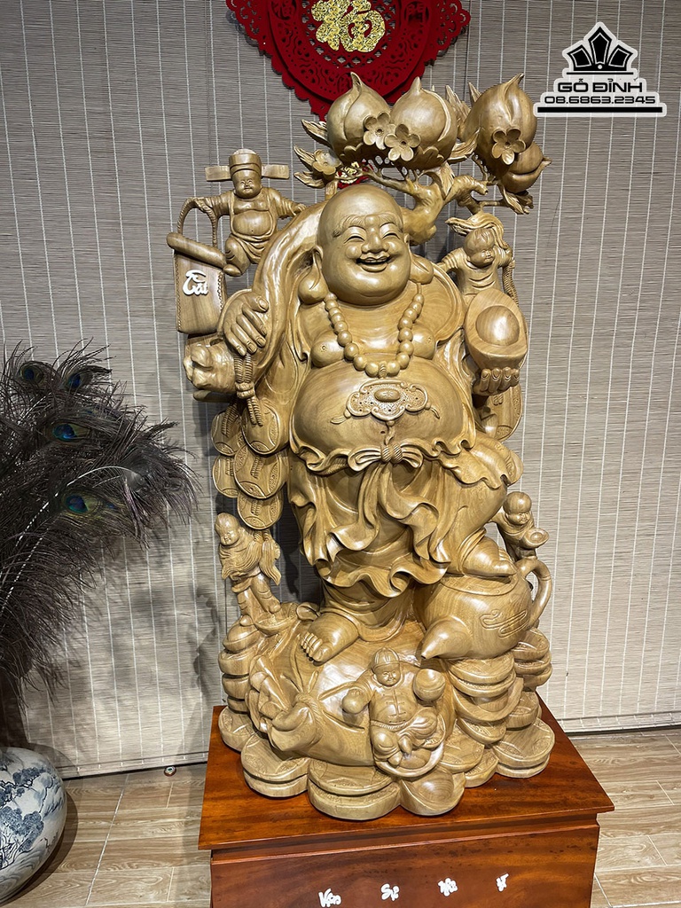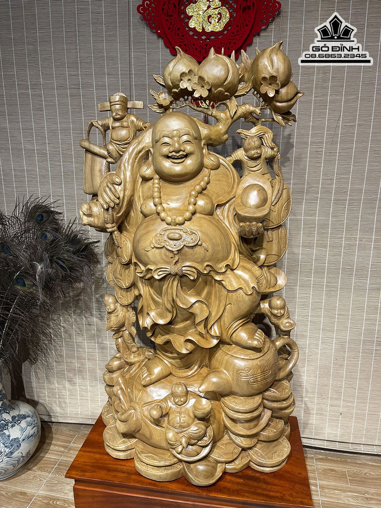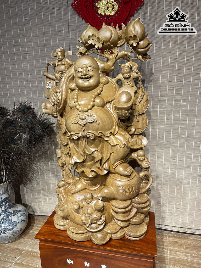 Tượng Phật Di Lặc Vác Cành Đào Gỗ Xá Xị