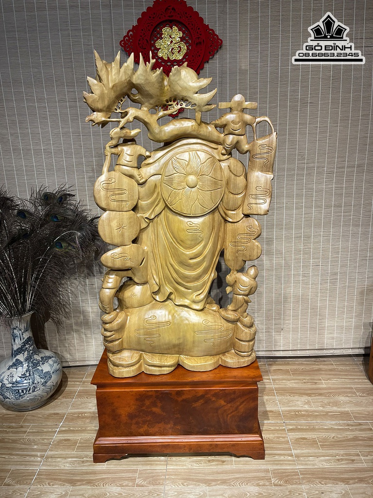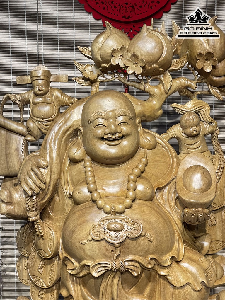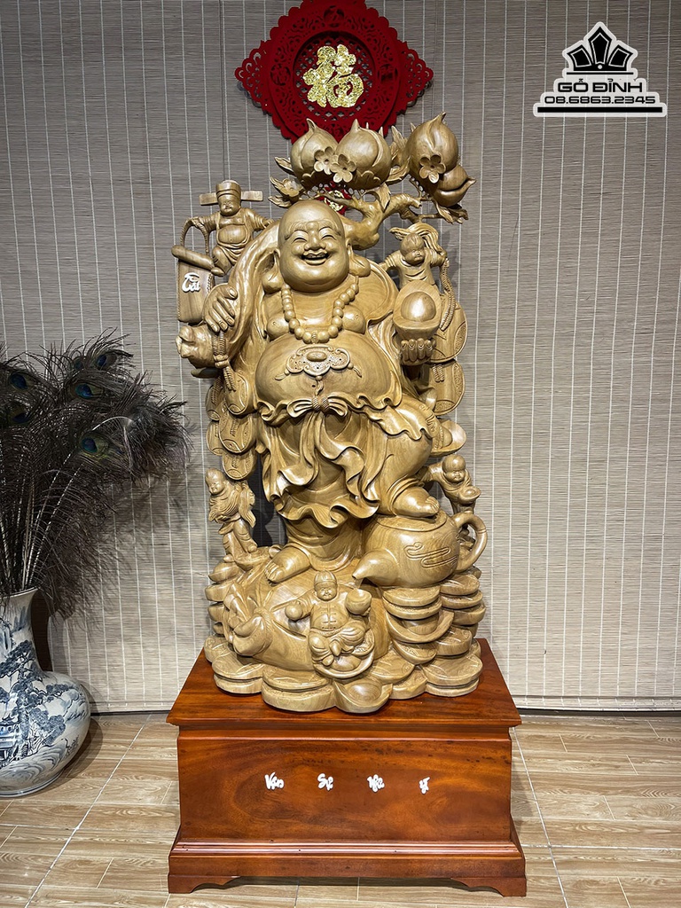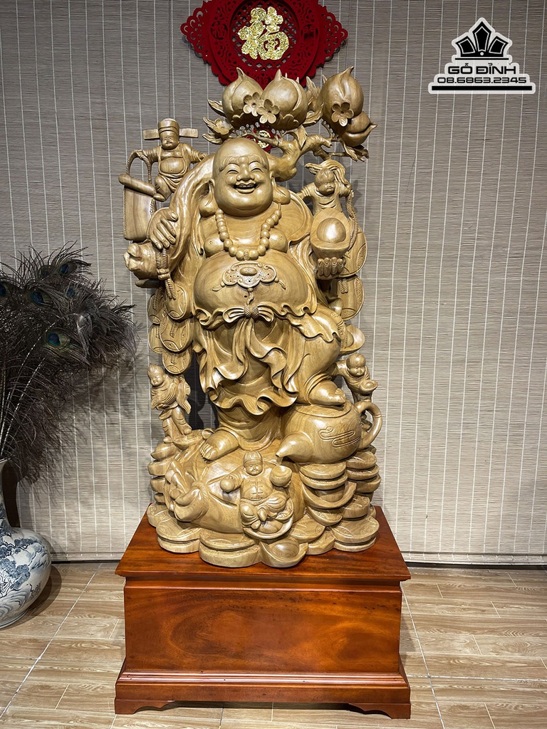Tượng Phật Di Lặc Vác Cành Đào Gỗ Xá Xị