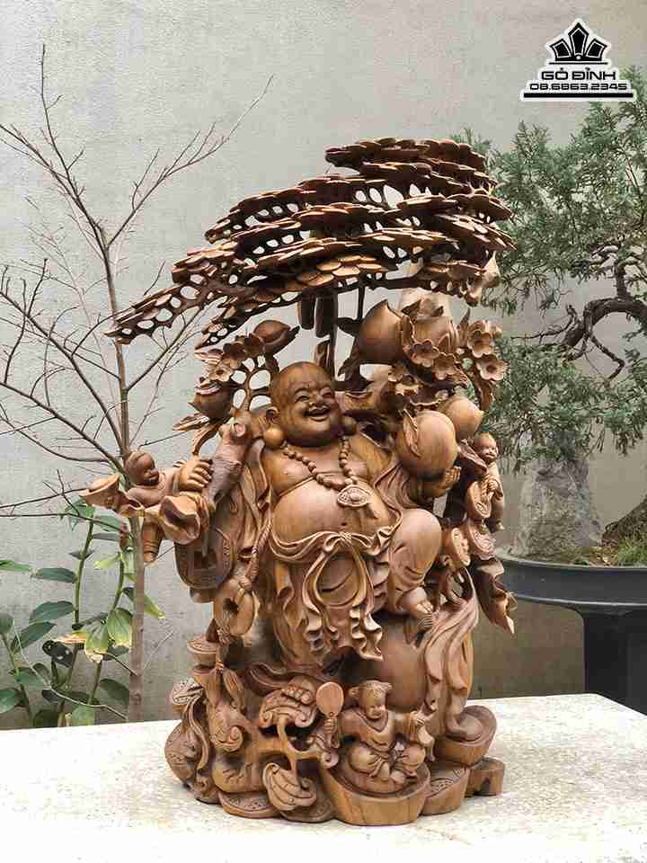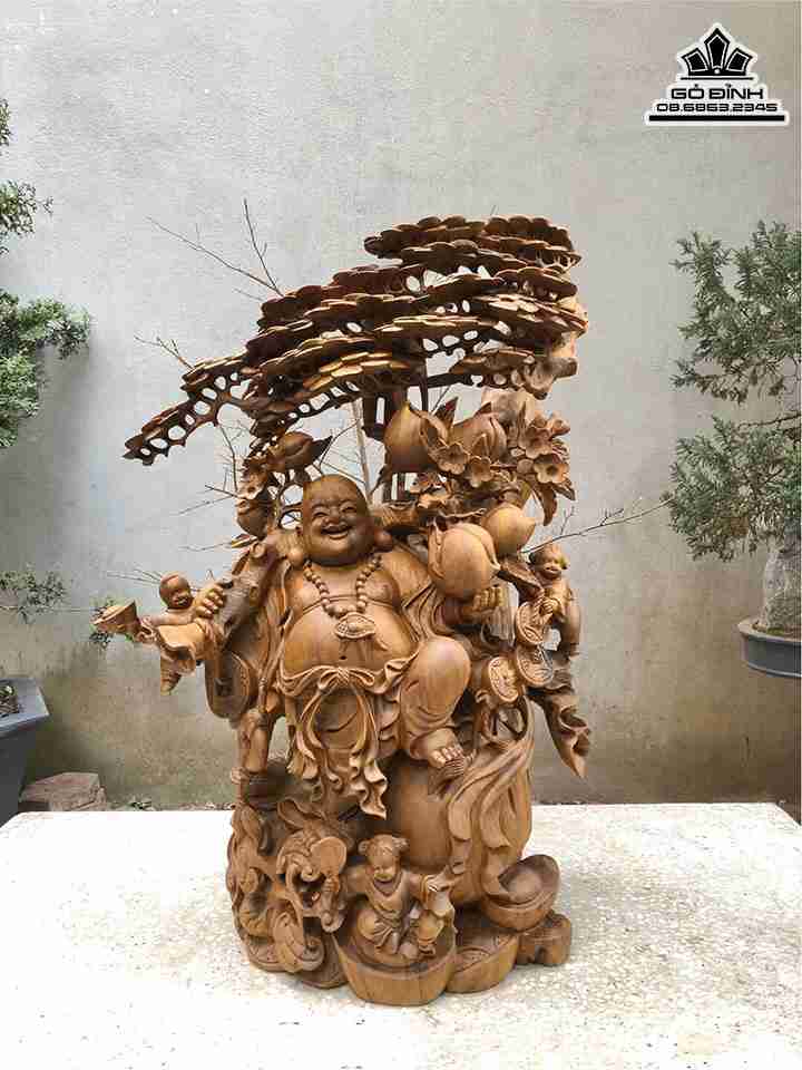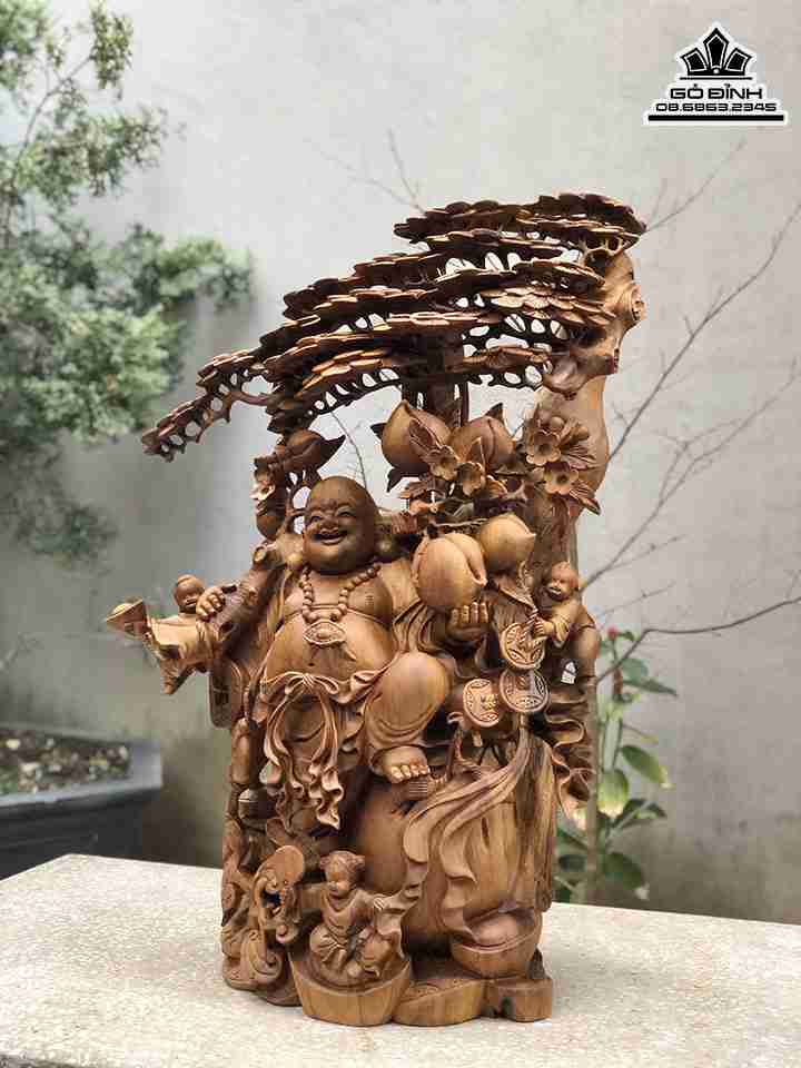 Tượng Phật Di Lặc Vác Cành Đào Gỗ Xá Xị