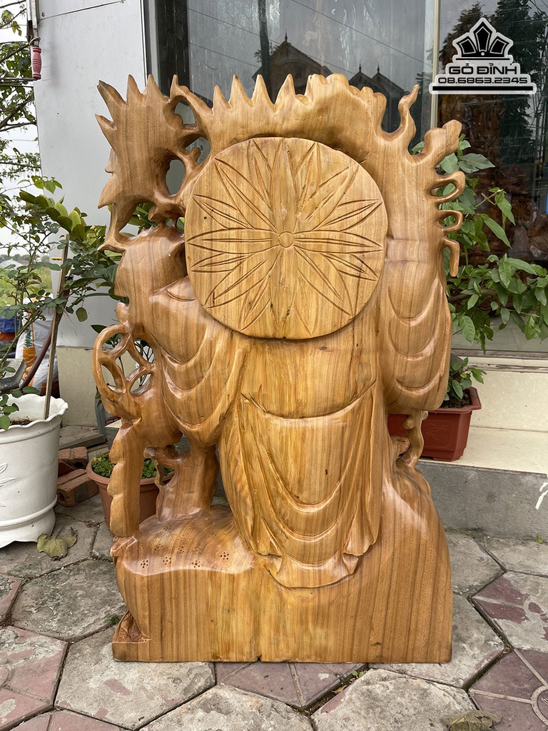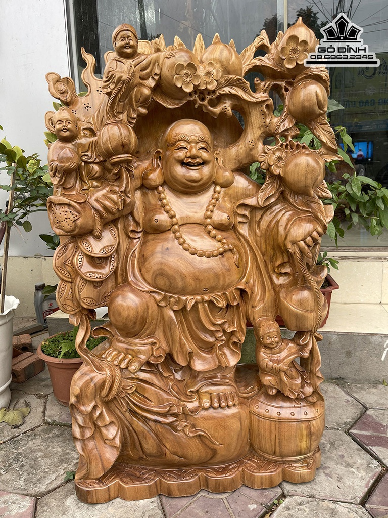 Tượng Phật Di Lặc Vác Cành Đào Gỗ Xá Xị Cao 93 Ngang 58 Sâu 24 (cm)