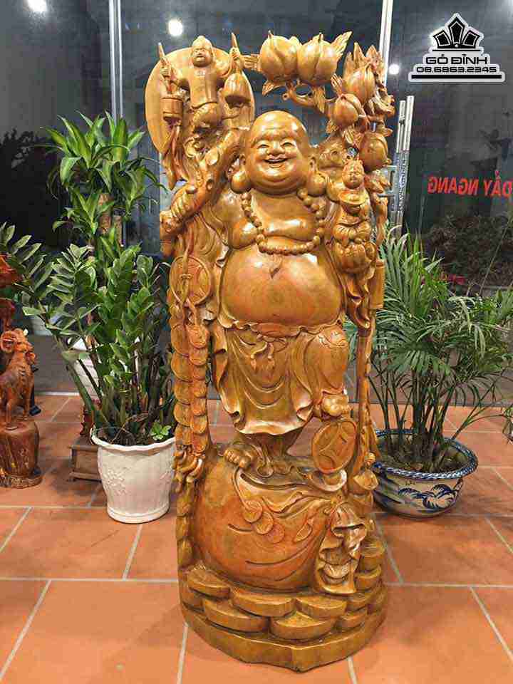 Tượng Phật Di Lặc Vác Cành Đào Gỗ Xá Xị ( Gù Hương ) Cao 144 Rộng 60 Dày 29 (cm)