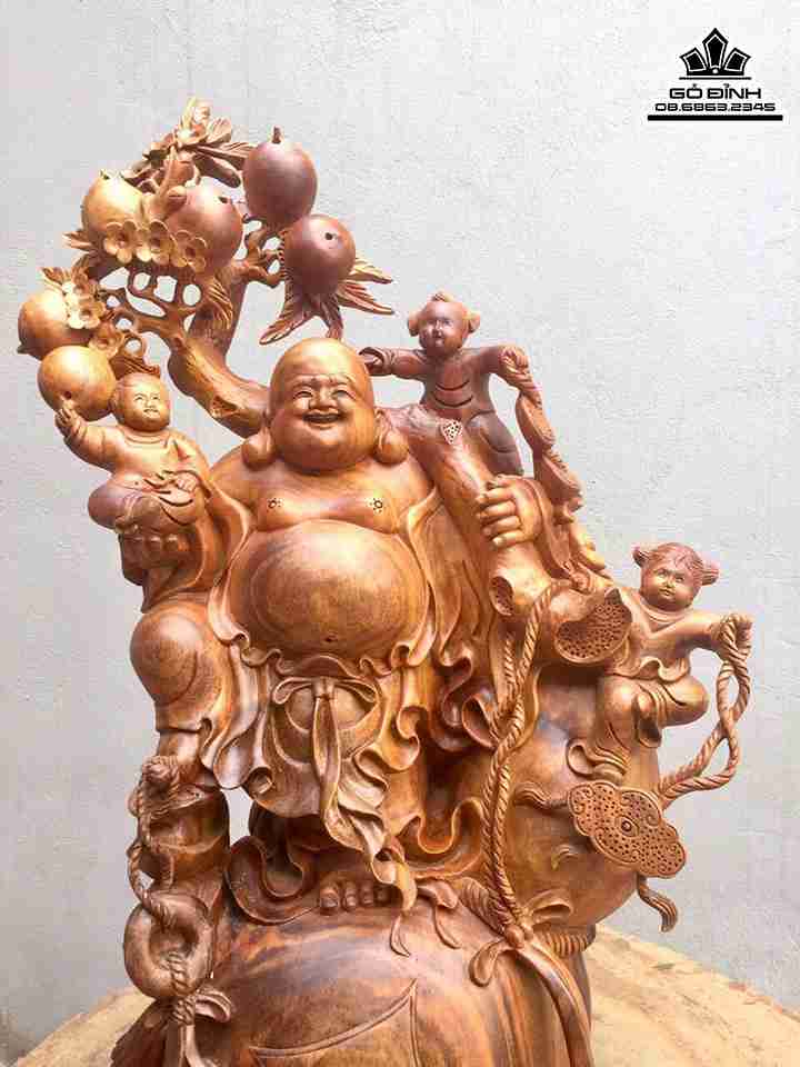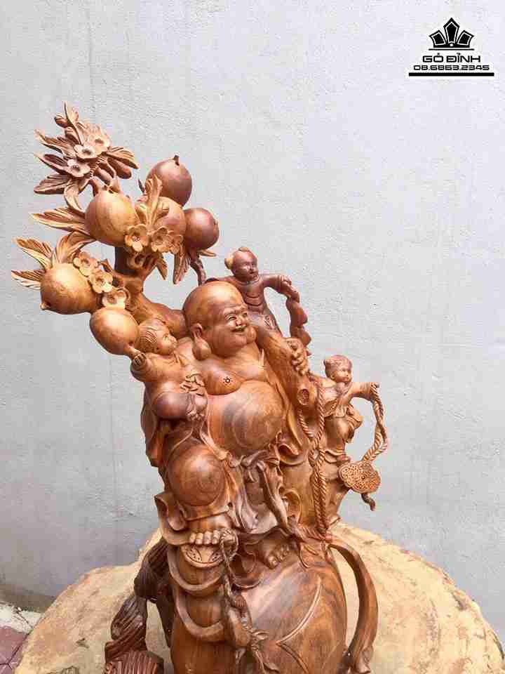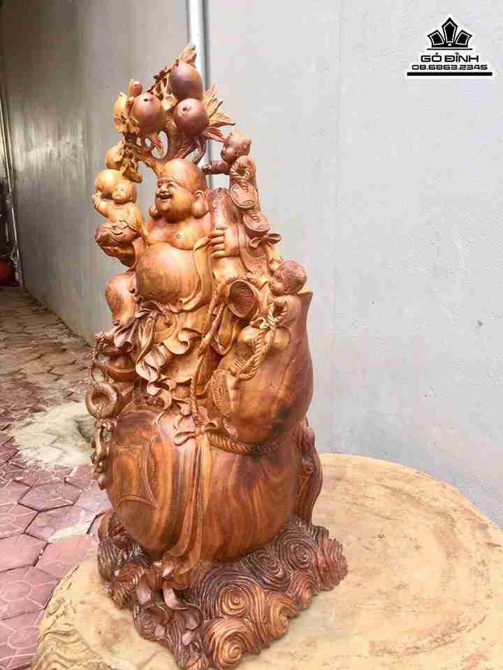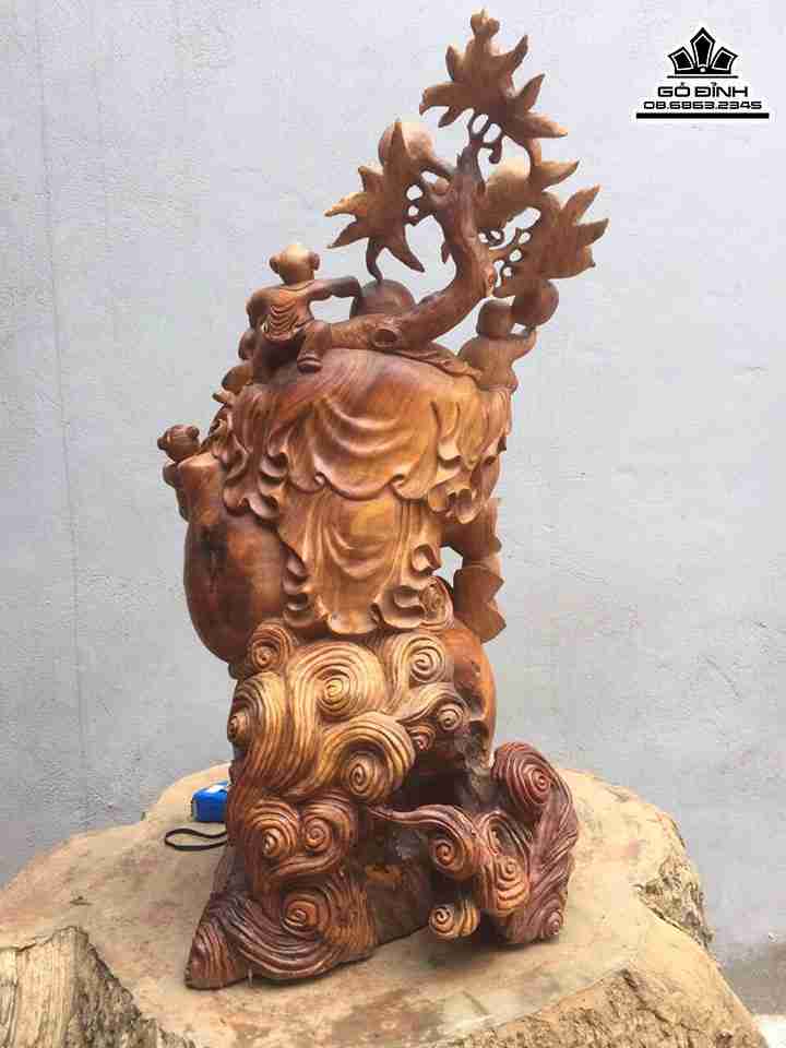 Tượng Phật Di Lặc Vác Cành Đào Gỗ Xá Xị (Gù Hương)