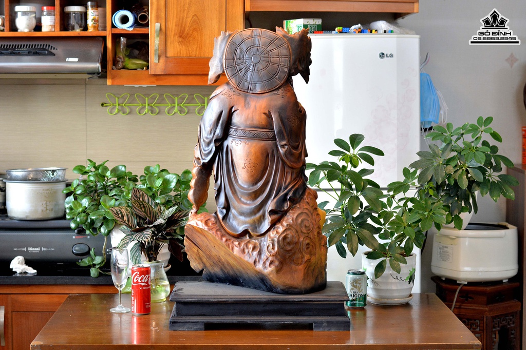 Tượng Phật Di Lặc Vác Cành Đào Gỗ Xá Xị (Gù Hương)