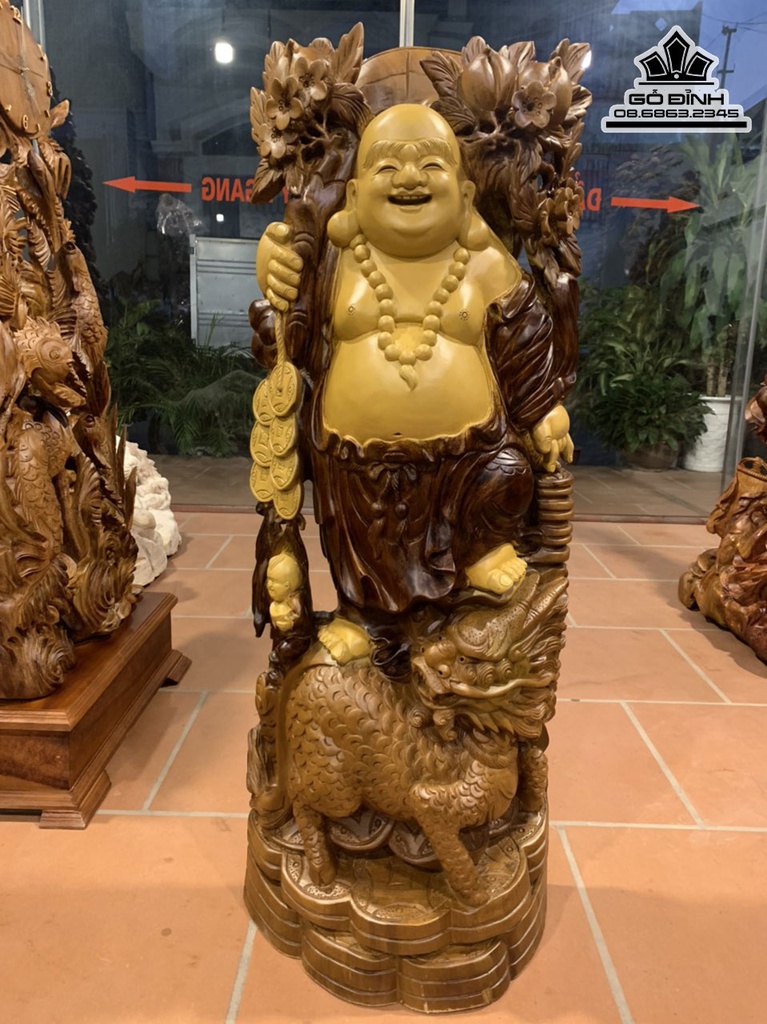 Tượng Phật Di Lặc Vác Cành Đào Gỗ Xá Xị (Gù Hương) Cao 98 Ngang 37 Sâu 20 (cm)