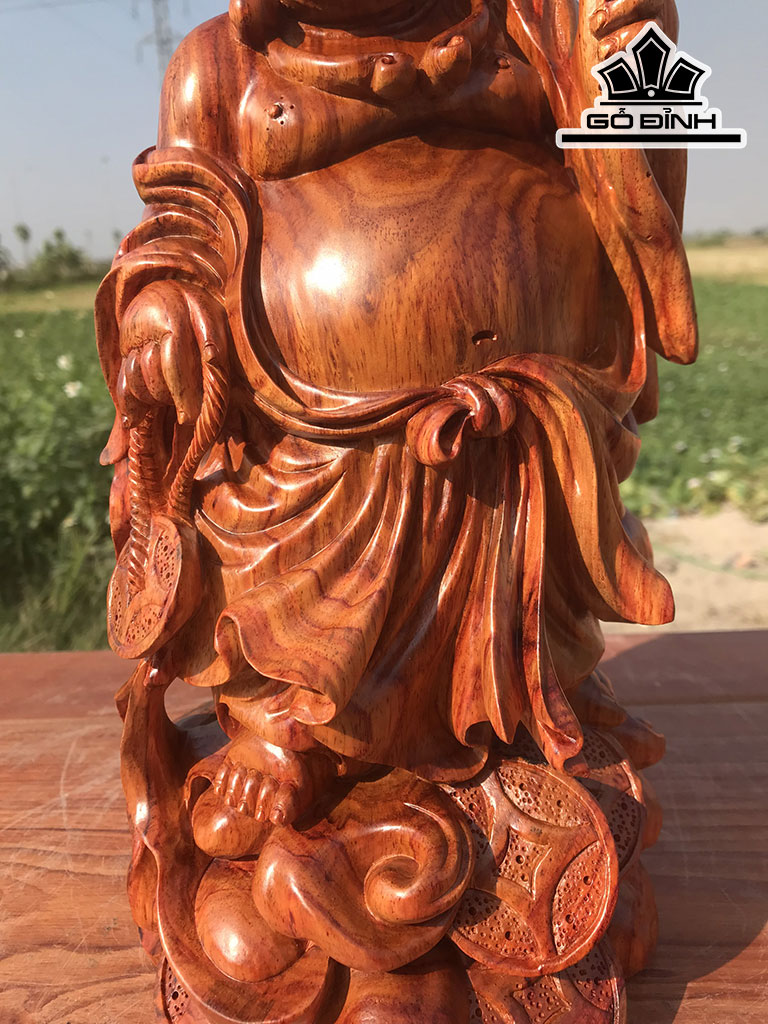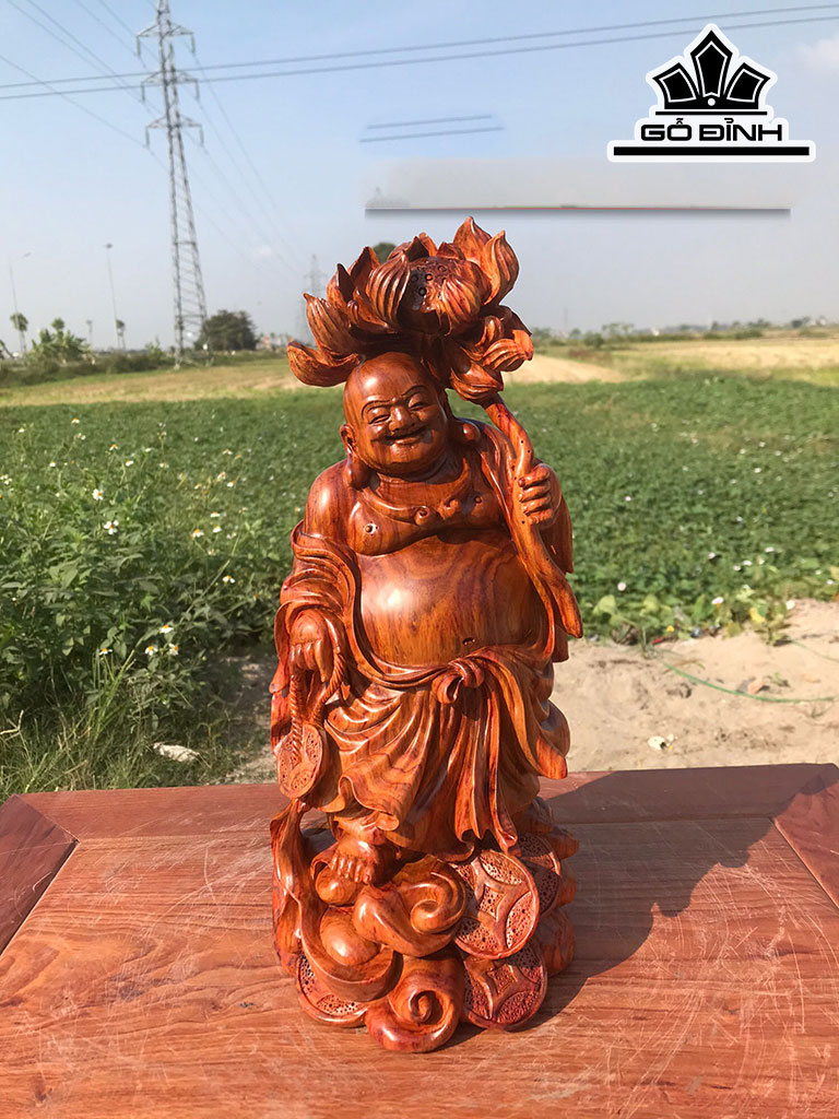 Tượng Phật Di Lặc Vác Cành Sen Gỗ Sưa Cao 36 Ngang 17 Sâu 17 (cm)
