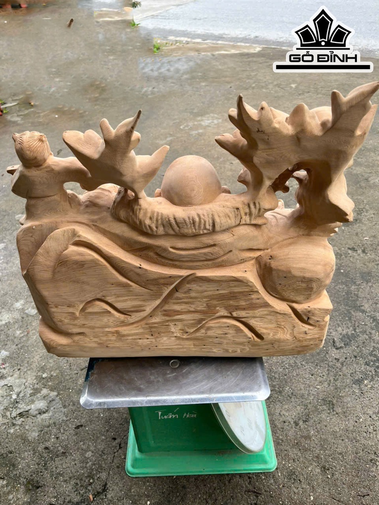 Tượng Phật Di Lặc Vác Đào Gỗ Ngọc Am Cao 48 Ngang 51 Sâu 24 (cm)
