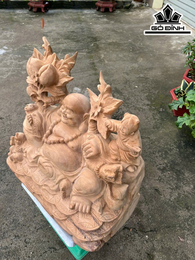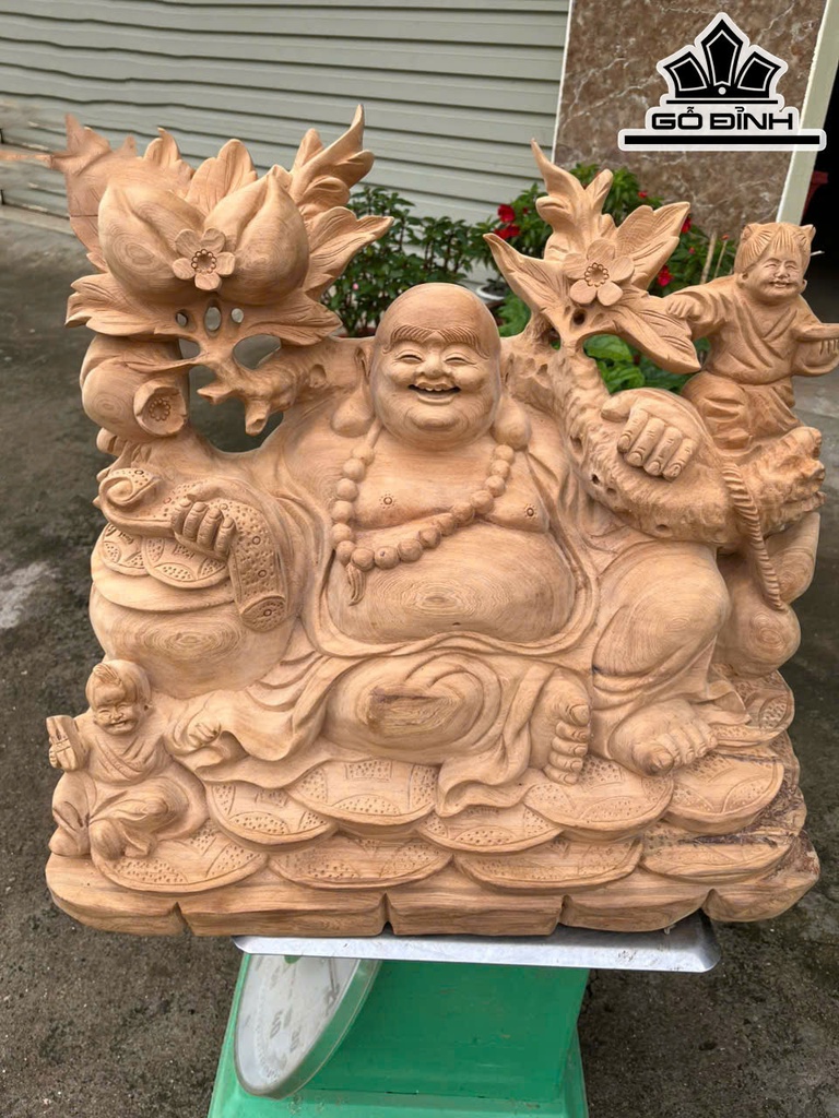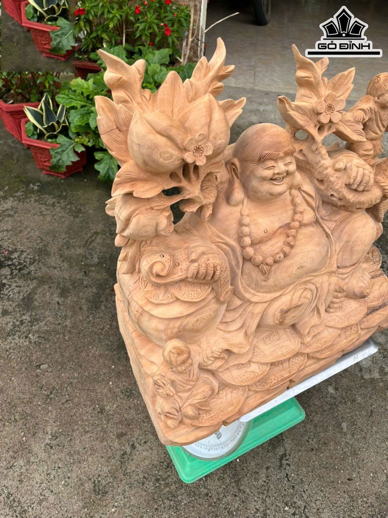 Tượng Phật Di Lặc Vác Đào Gỗ Ngọc Am Cao 48 Ngang 51 Sâu 24 (cm)