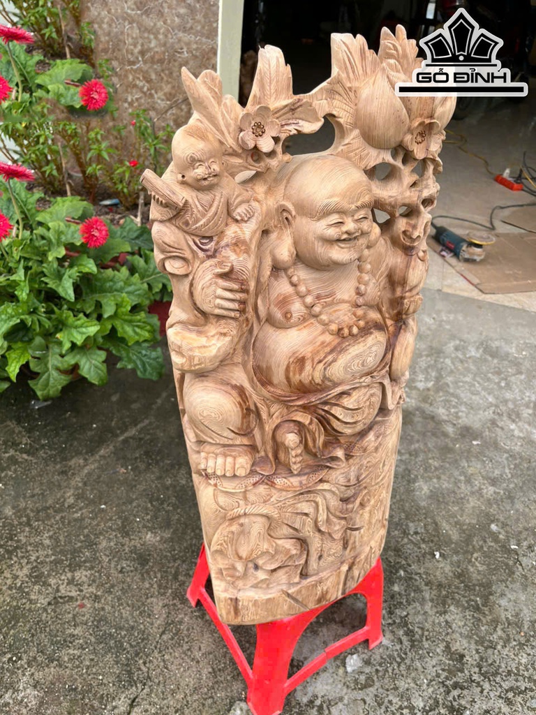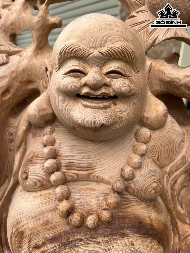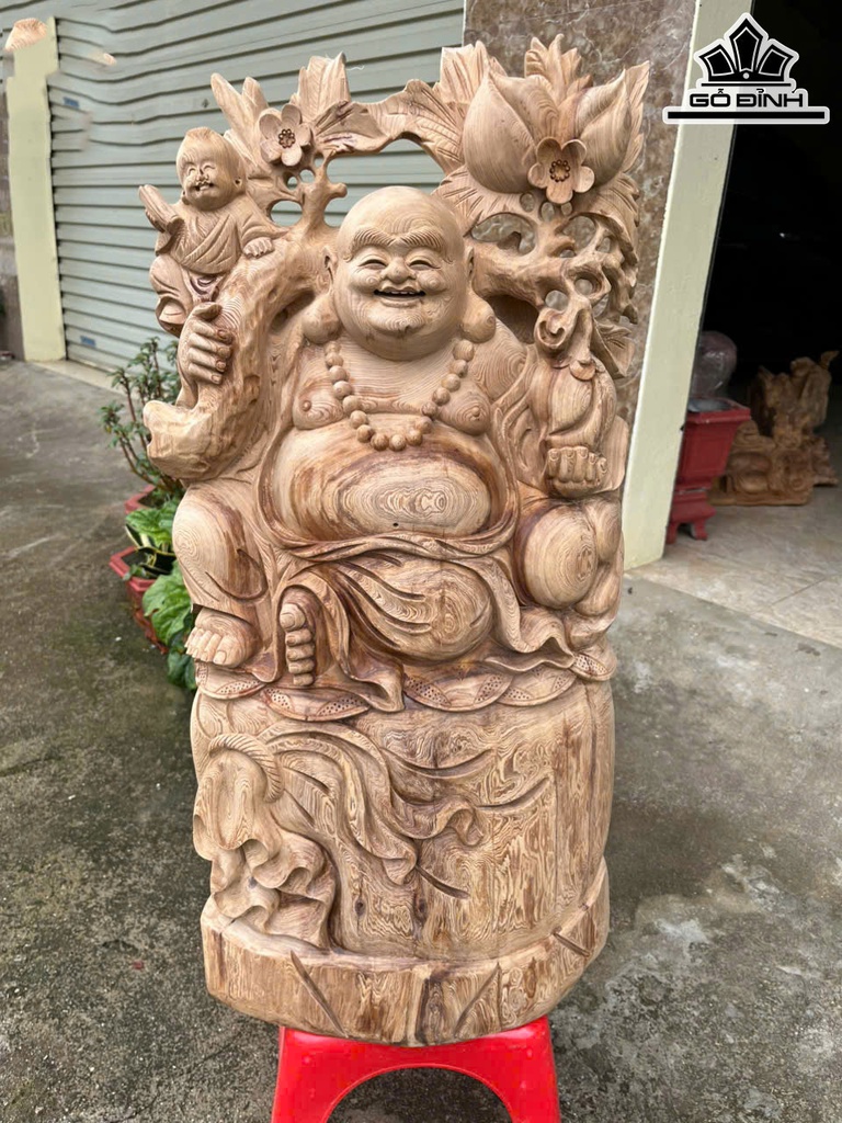 Tượng Phật Di Lặc Vác Đào Gỗ Ngọc Am Cao 73 Ngang 36 Sâu 21 (cm)