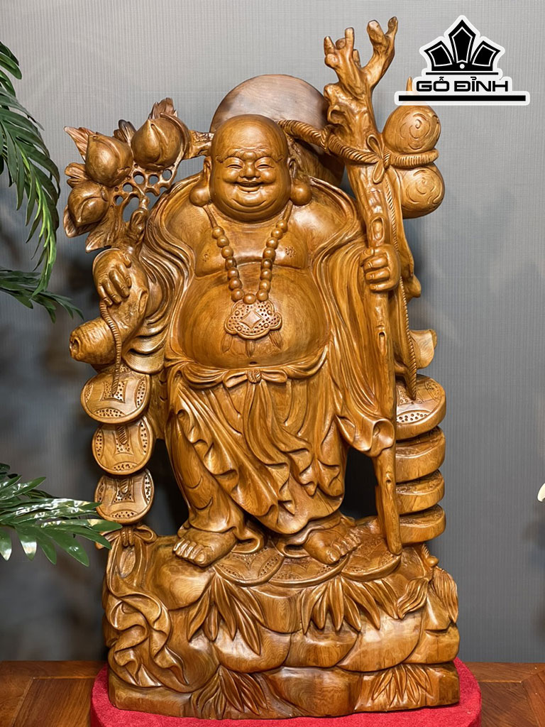 Tượng Phật Di Lặc Vác Đào Gỗ Ngọc Am Cao 80 Ngang 43 Sâu 20 (cm)