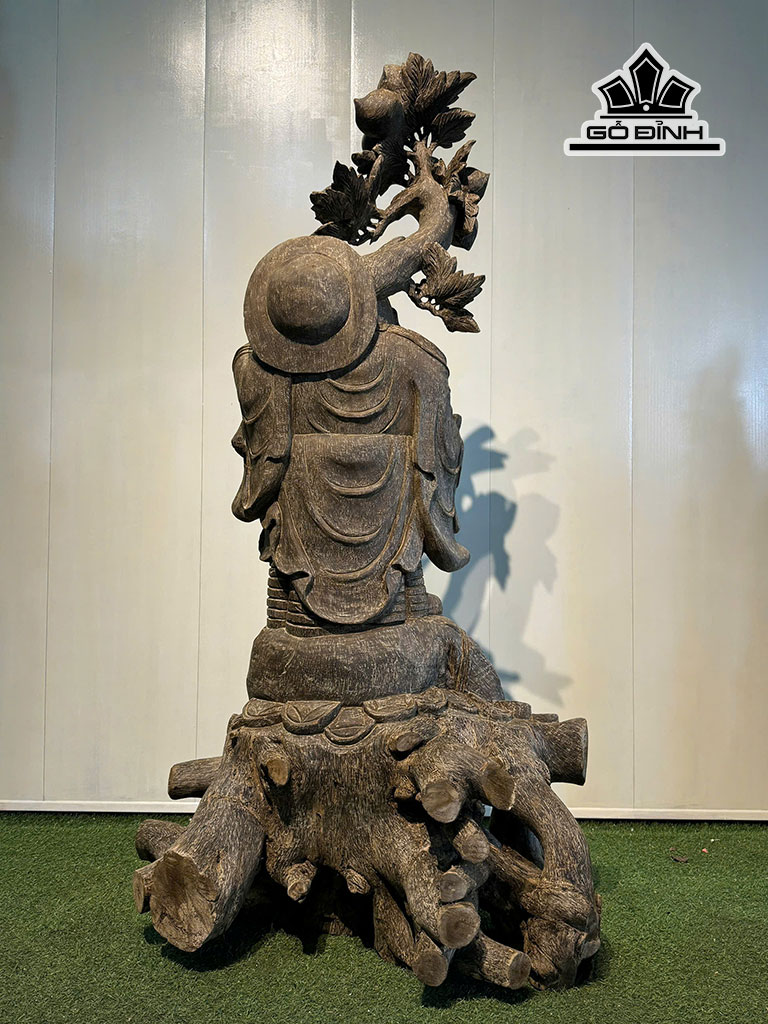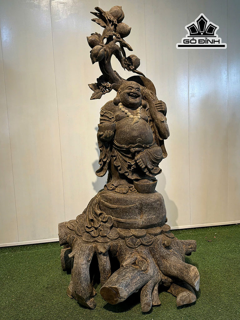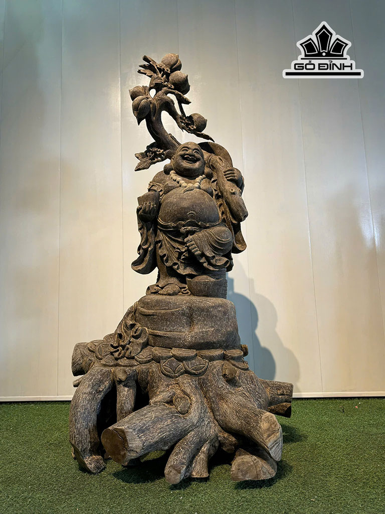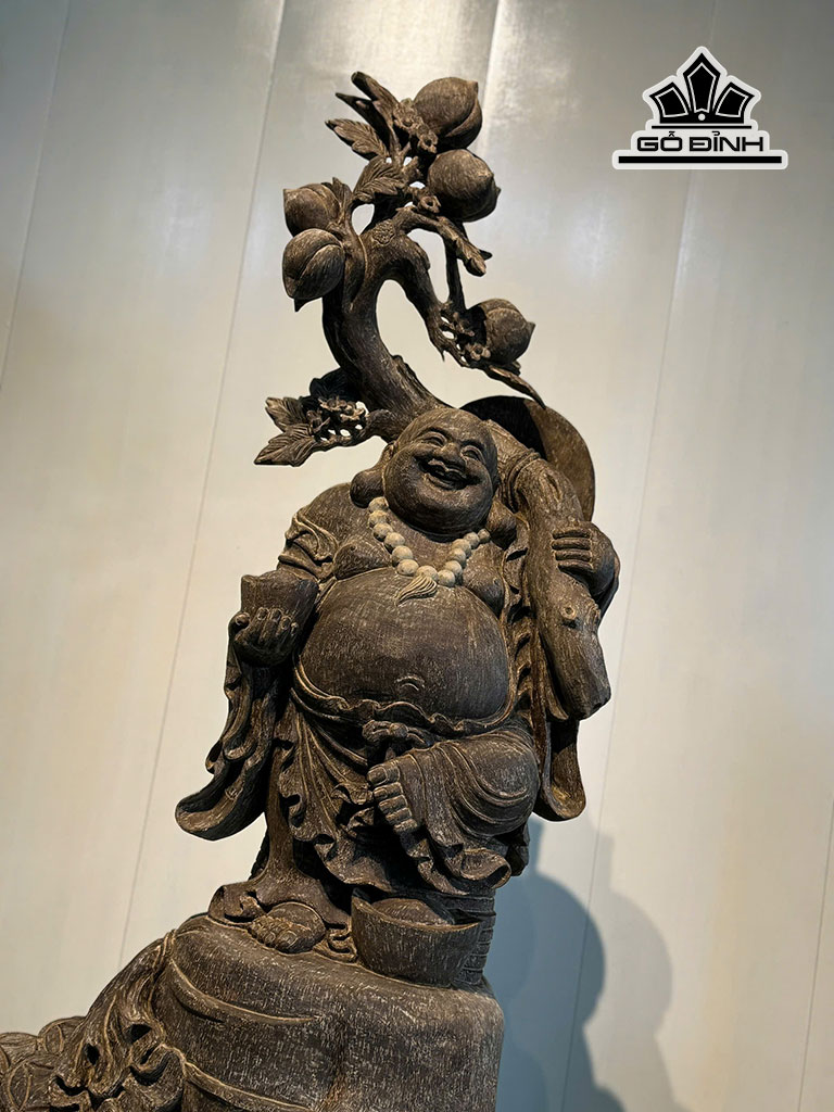 Tượng Phật Di Lặc Vác Đào Gỗ Trầm Hương Cao 168 Ngang 100 Sâu 92 (cm)