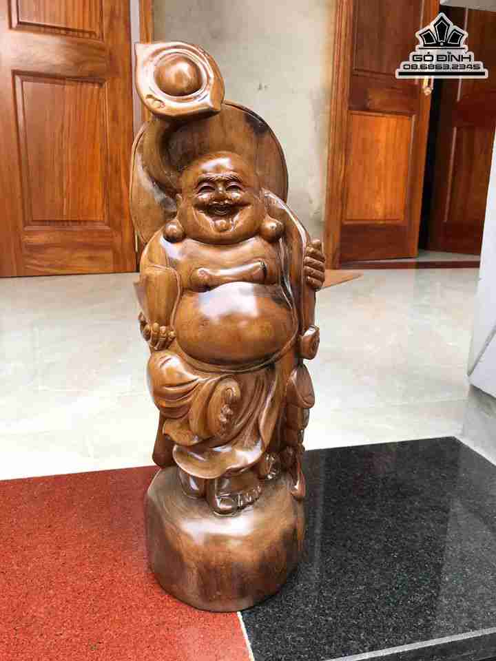Tượng Phật Di Lặc Vác Gậy Như Ý Gỗ Bách Xanh Cao 48 Rộng 17 Dày 14 (cm)