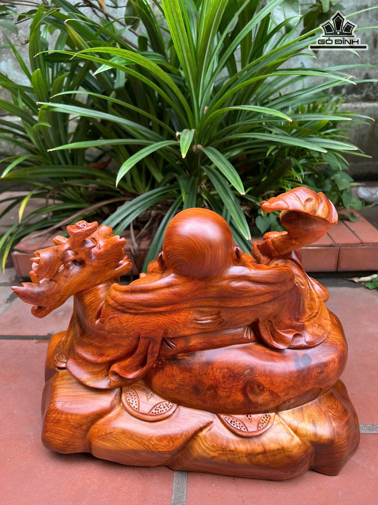 Tượng Phật Di Lặc Vác Gậy Như Ý Gỗ Hương Cao 33 Ngang 43 Sâu 26 (cm)