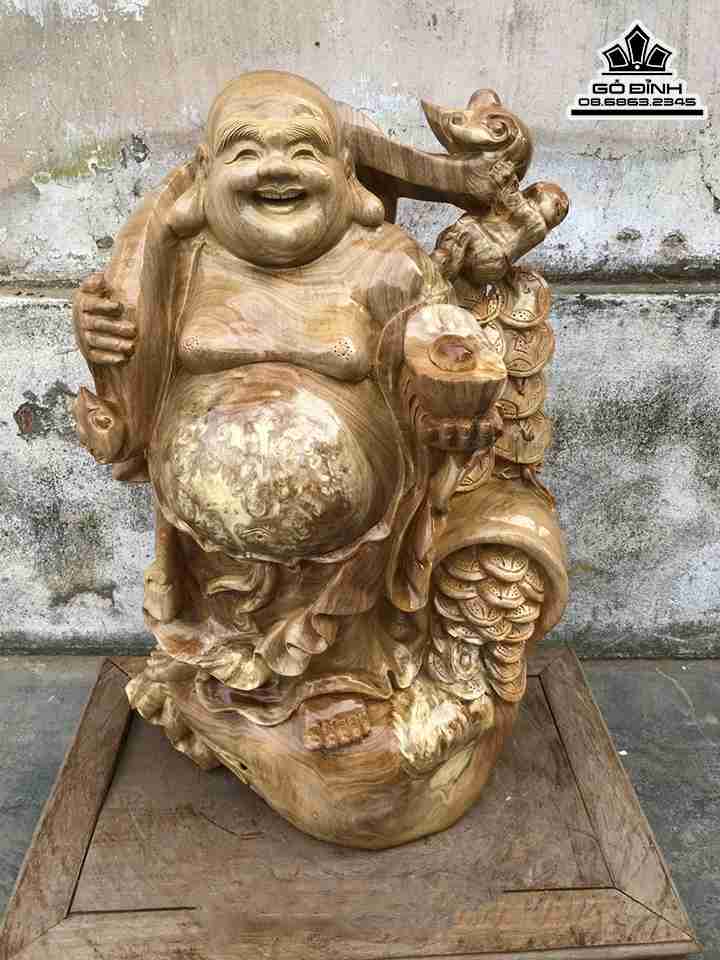 Tượng Phật Di Lặc Vác Gậy Như Ý Gỗ Nu Nghiến Cao 55 Rộng 35 Sâu 16 (cm)